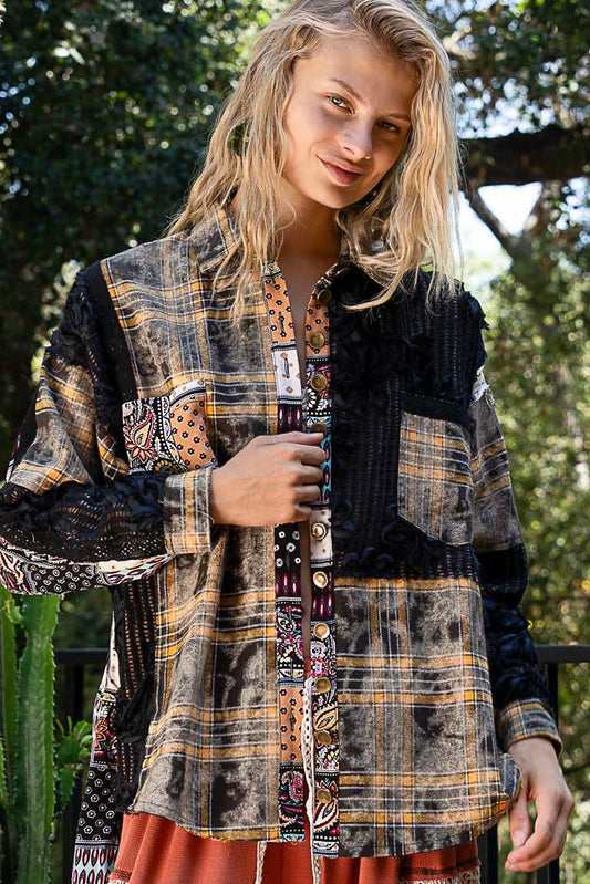 Dreamweaver Patchwork Longline Button-Up