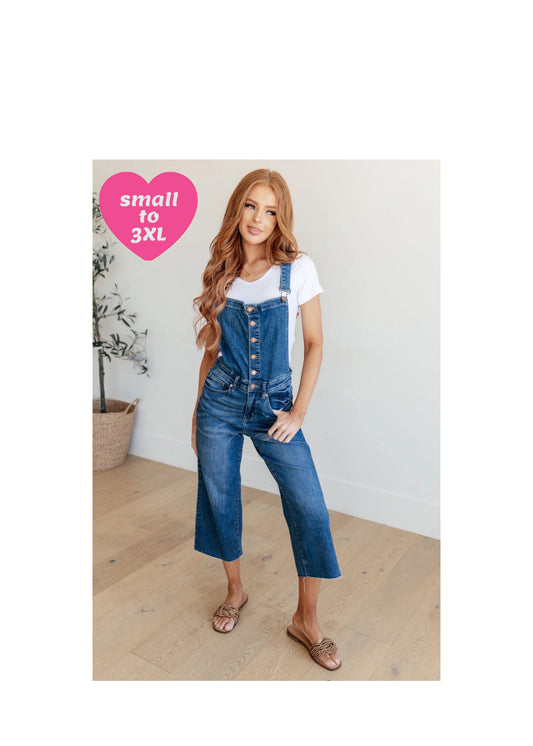 Priscilla High Rise Cropped Wide Leg Denim Overalls