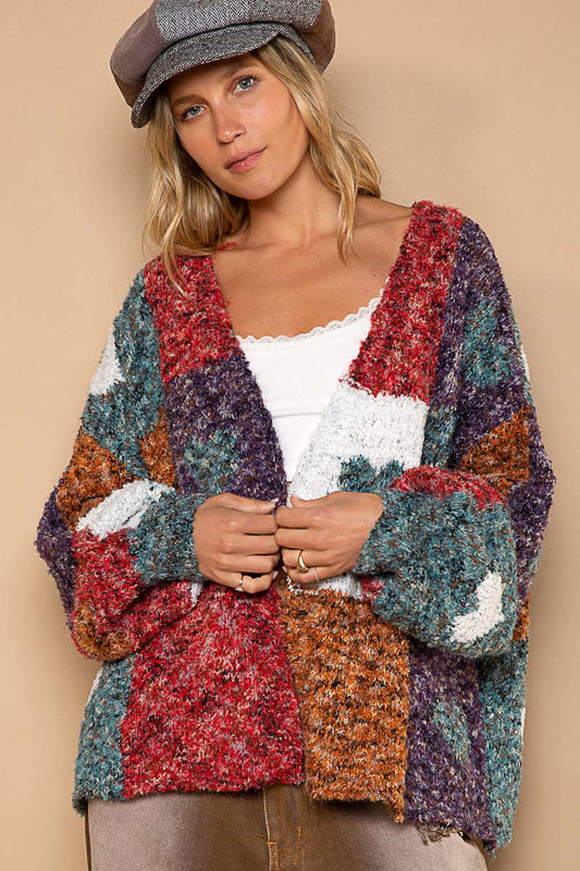 Love Games Color Block Heart Pattern Open Front Cardigan