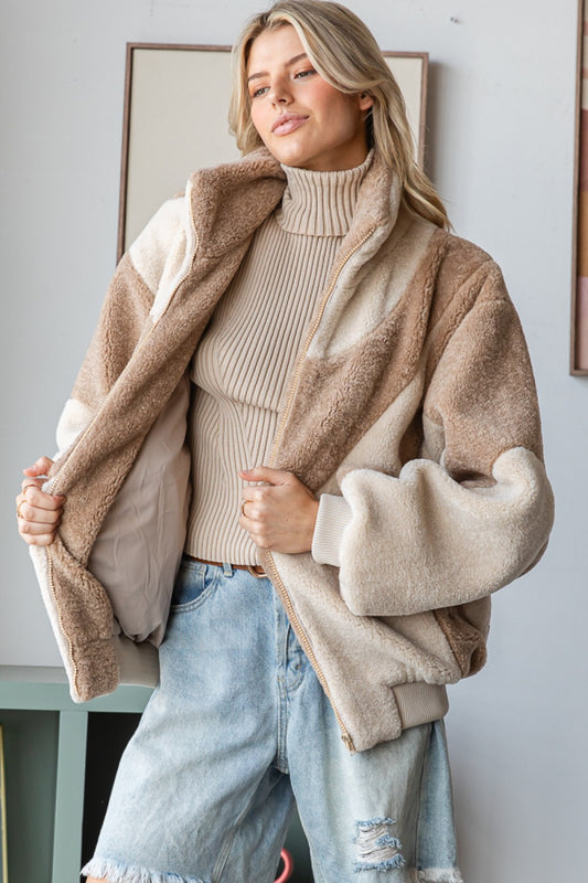 Keep It Cozy Two Tone Zip Up Sherpa Bomber (Sizes Small to XL)