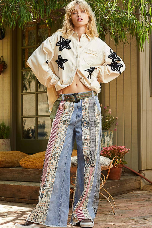 Be Legendary Patchwork Wide Leg Relaxed Fit Jeans (2 Colors)