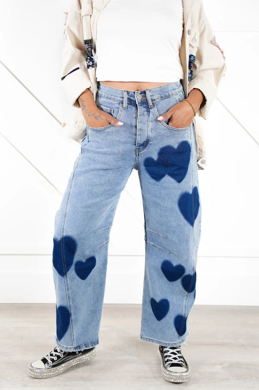 Going Steady Heart Stamped Barrel Jeans