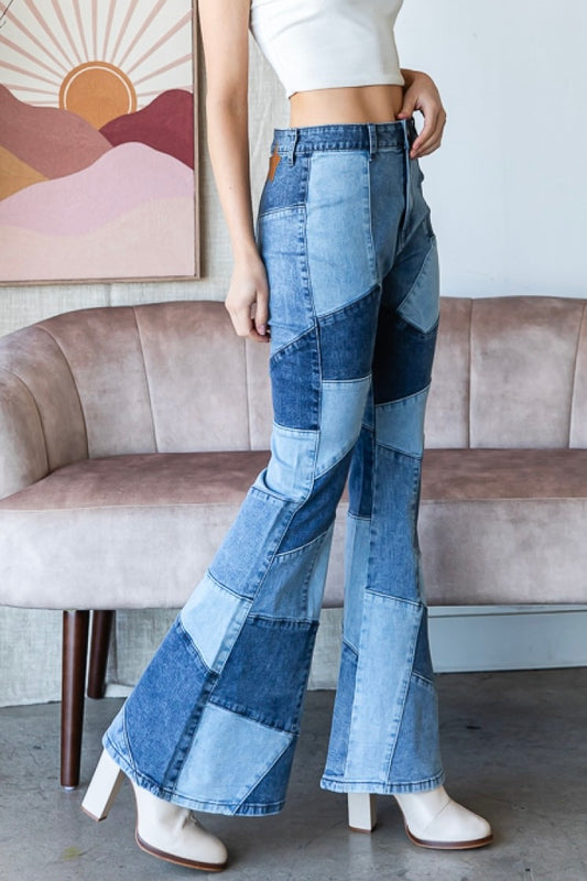 Believe The Hype Pieced High Rise Denim Flare Jeans
