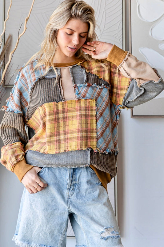 All In Washed Plaid Mixed Patchwork Pullover