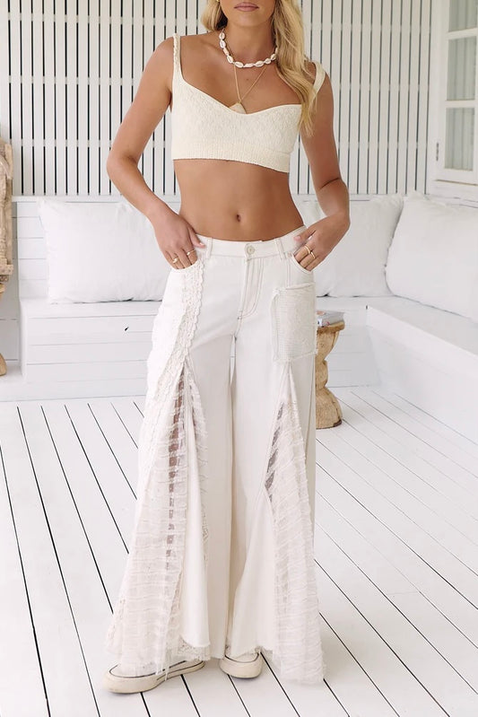 Great Escape Lace Pieced Exaggerated Wide Leg Jeans