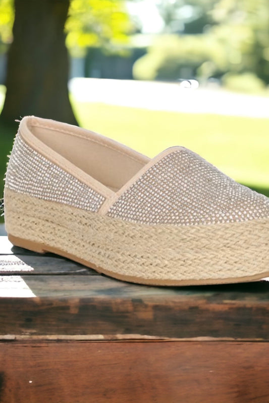 Sparked Rhinestone Encrusted Slip On Espadrilles