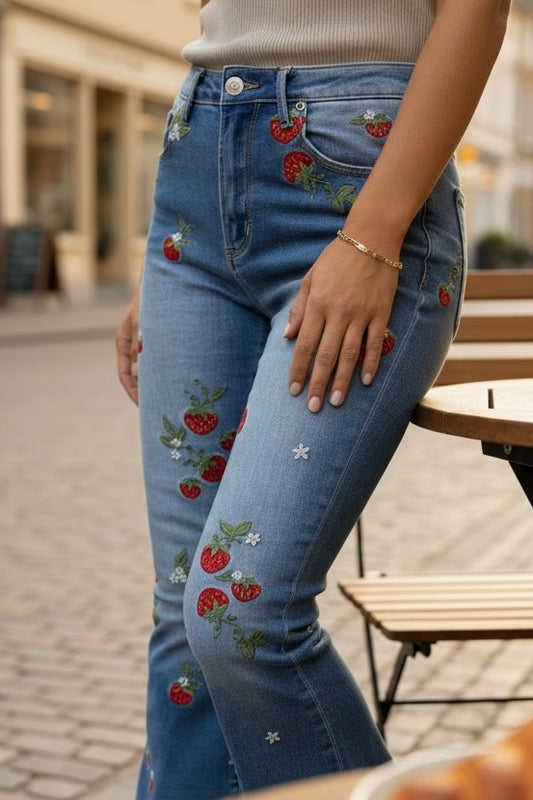 Eye Candy Washed Floral Patched + Embroidered Flares