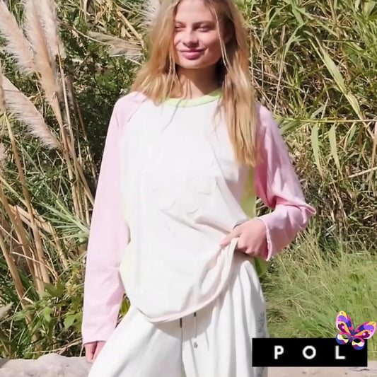 In My Groove Daisy Patch Color Block Long Sleeve Top