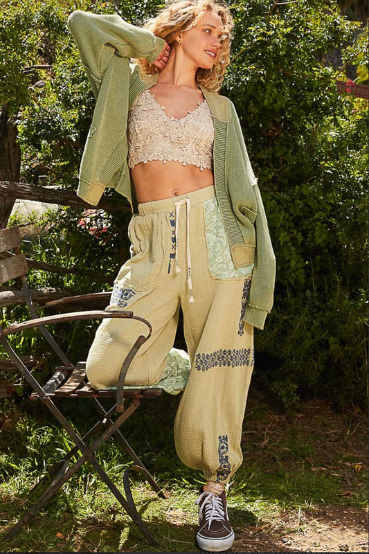 I’m So Fly Gauze + Lace Embroidered Slouchy Jogger Pants
