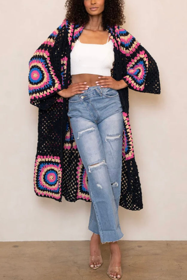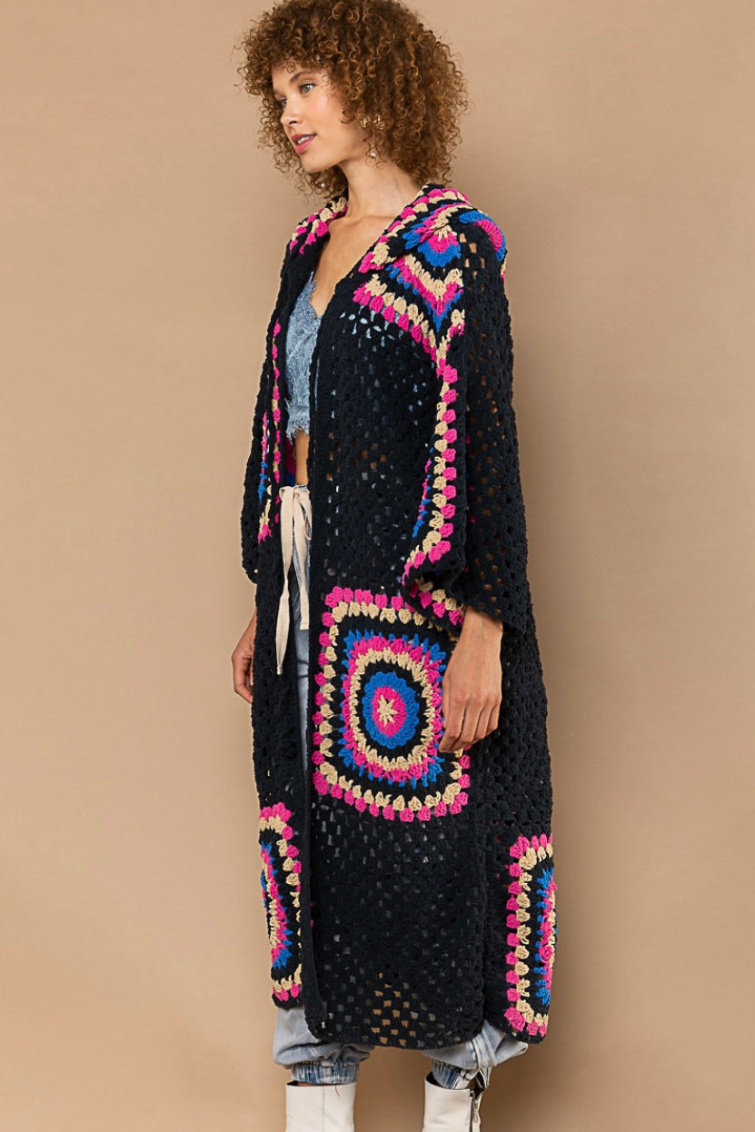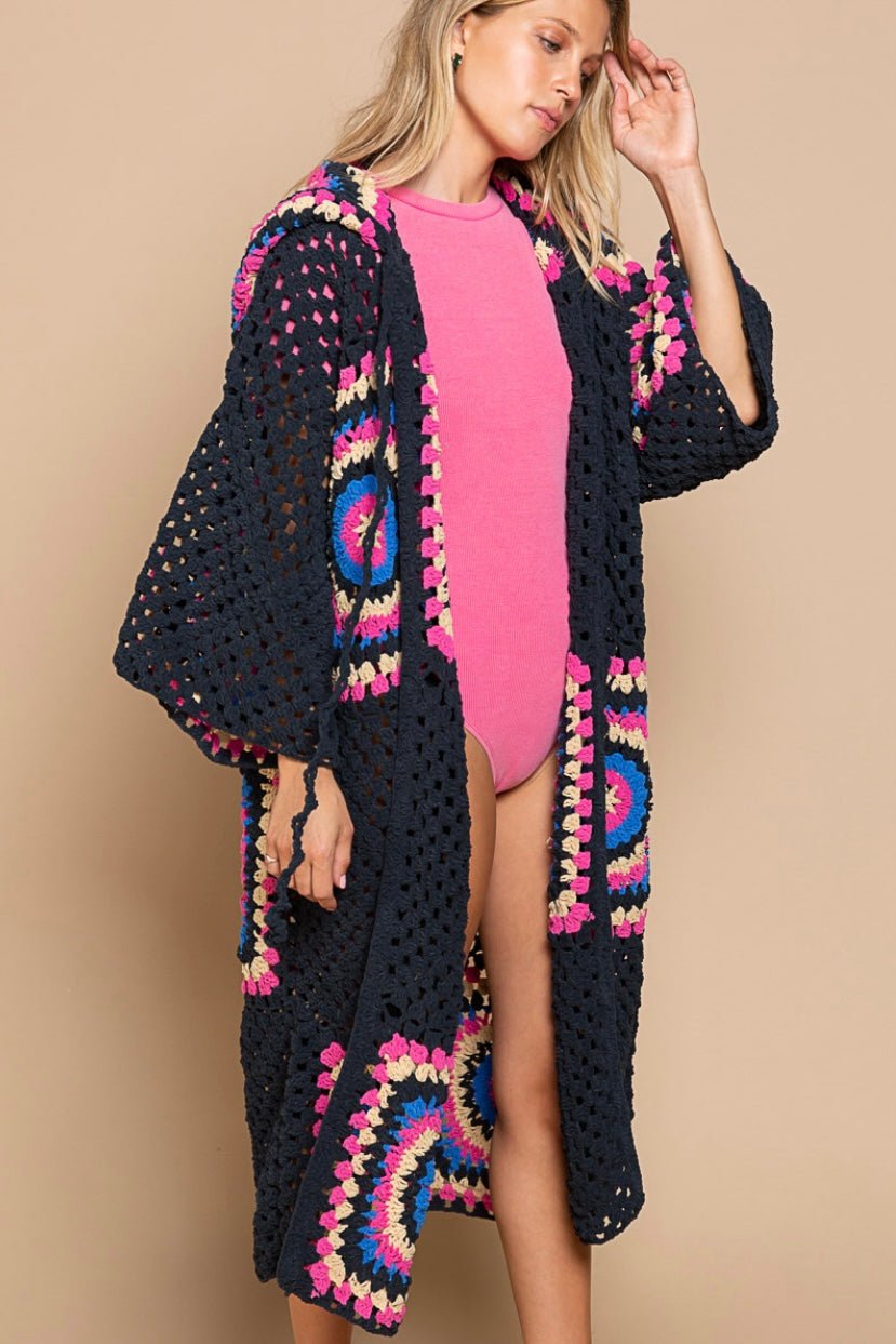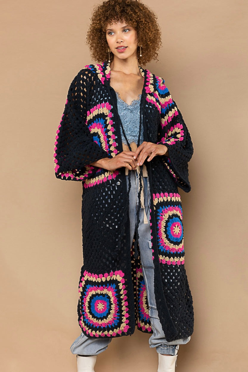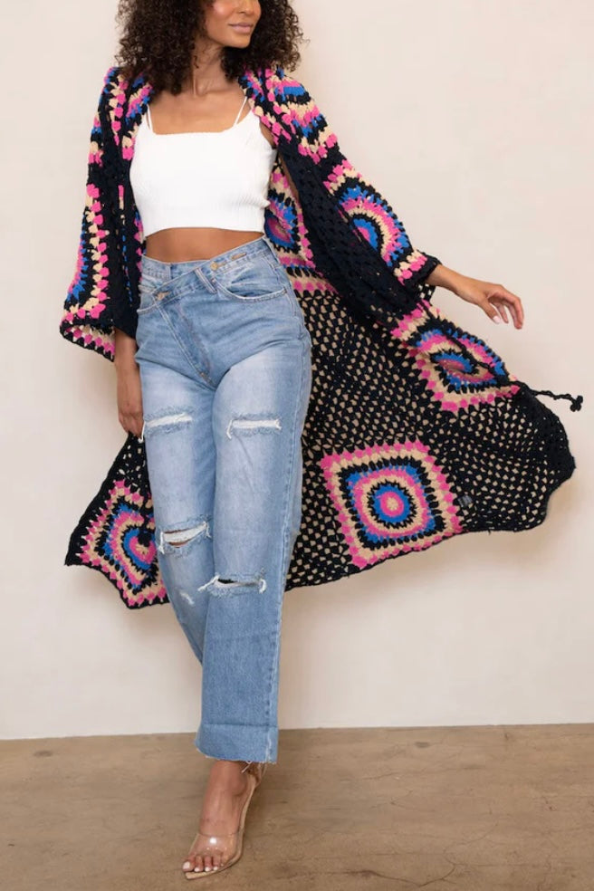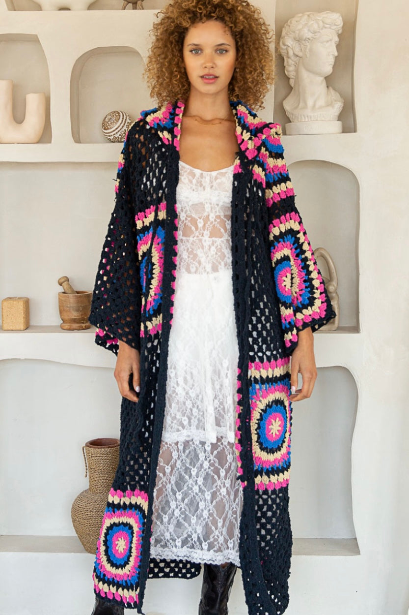 Boho Dreams Crochet Chenille Midi Cardigan
