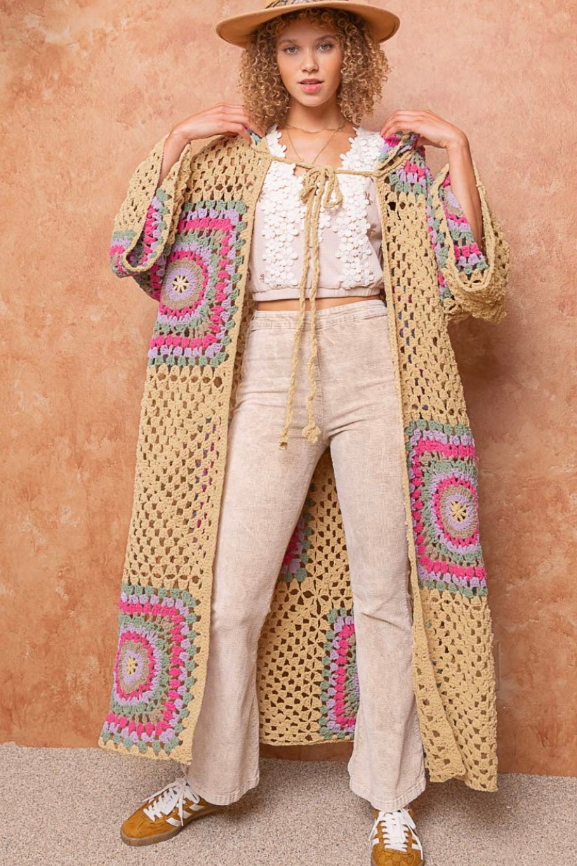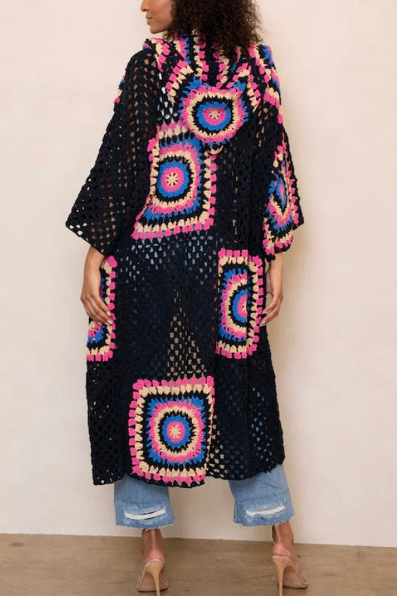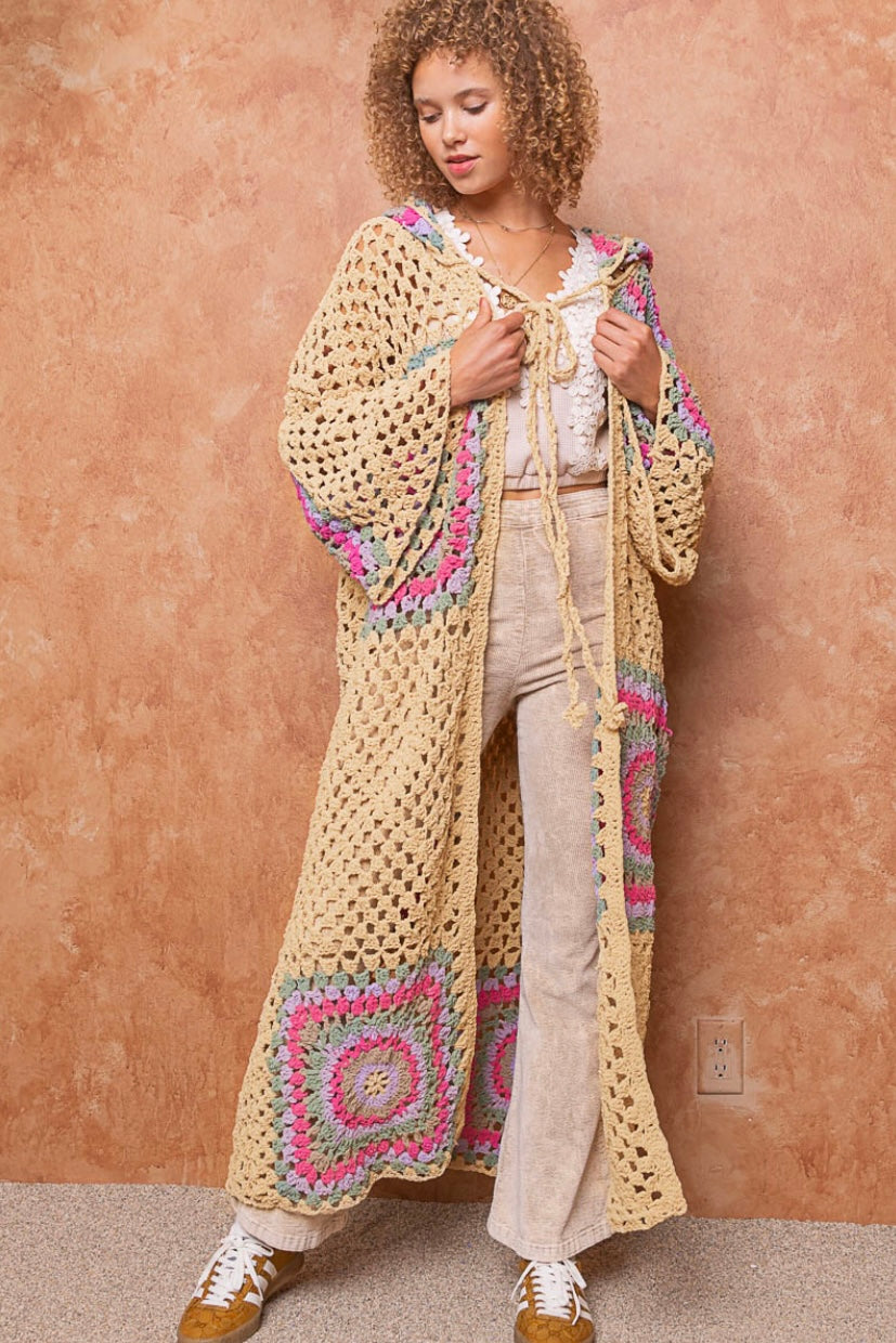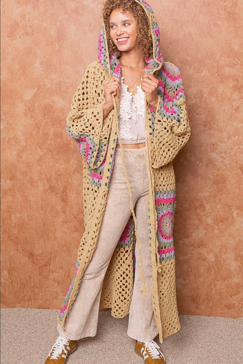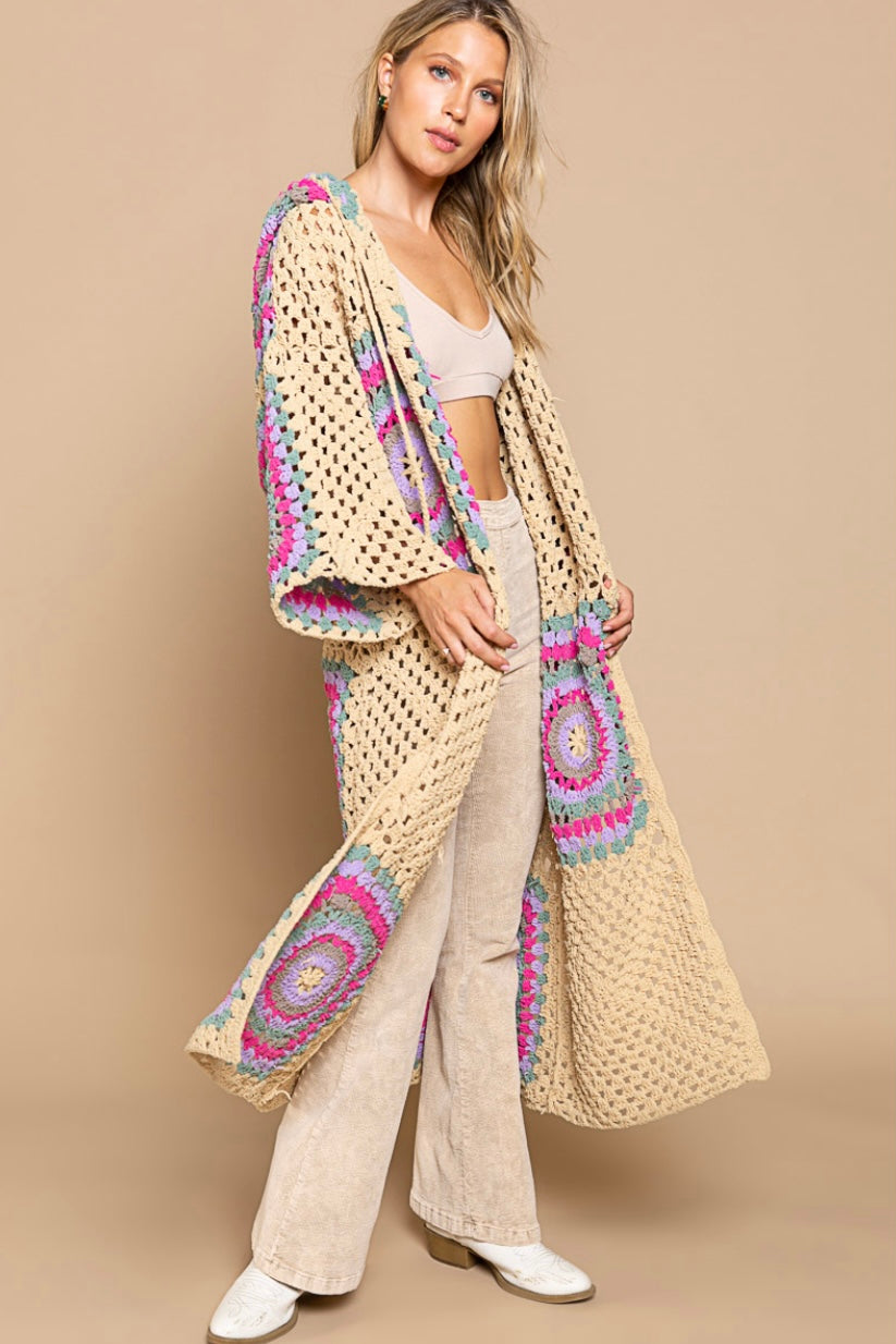 Boho Dreams Crochet Chenille Midi Cardigan