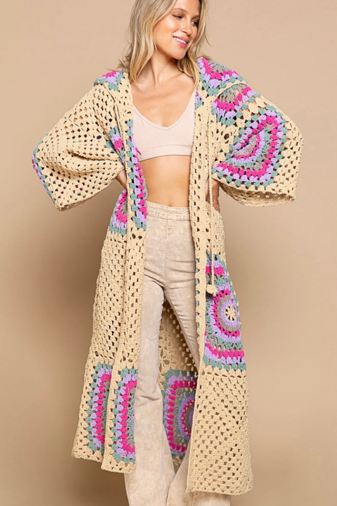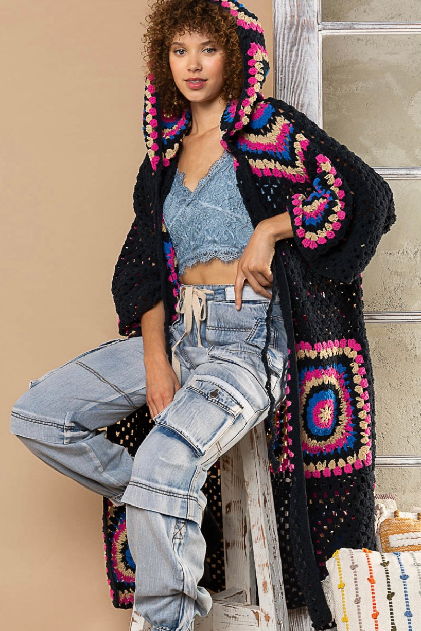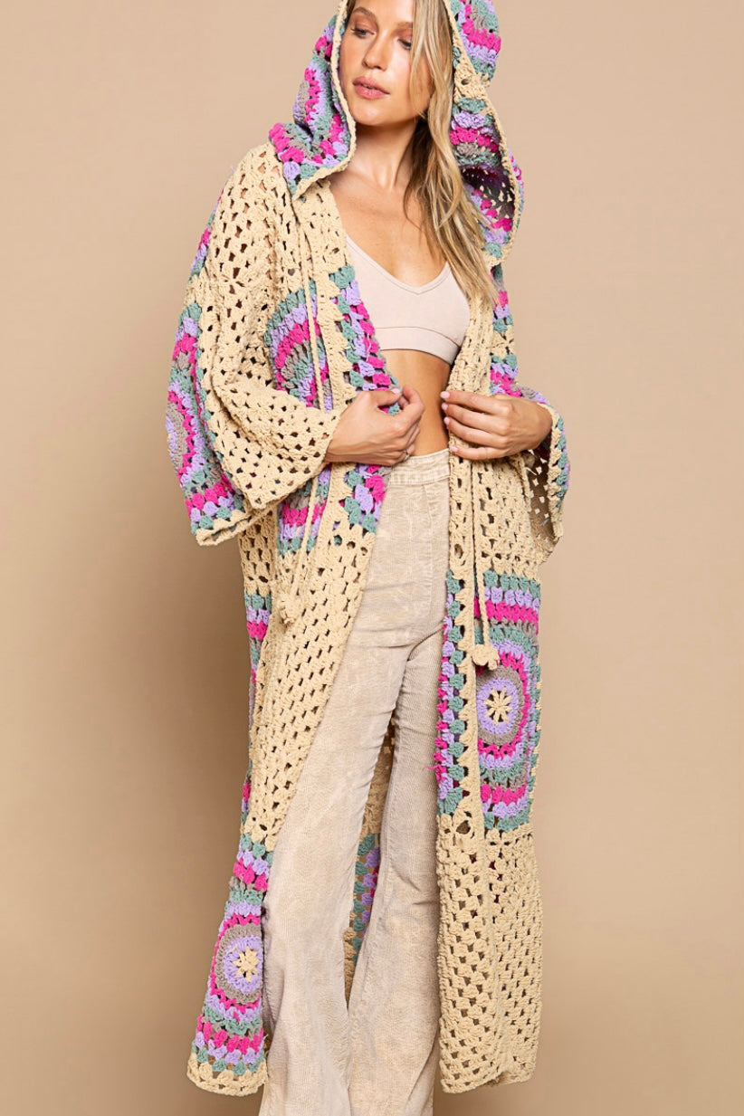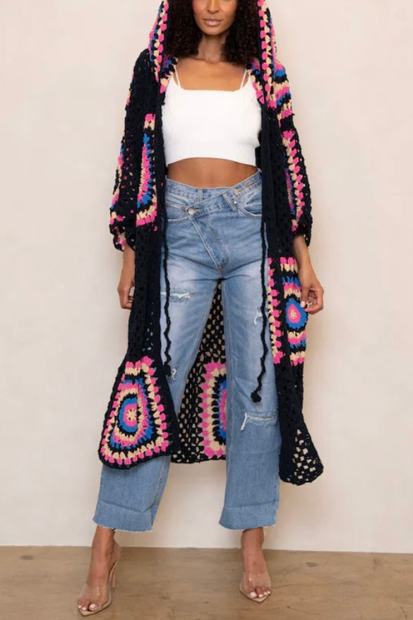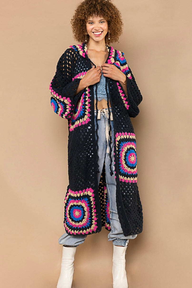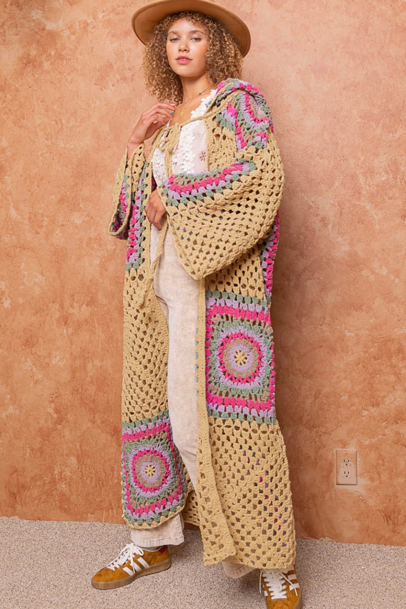 Boho Dreams Crochet Chenille Midi Cardigan