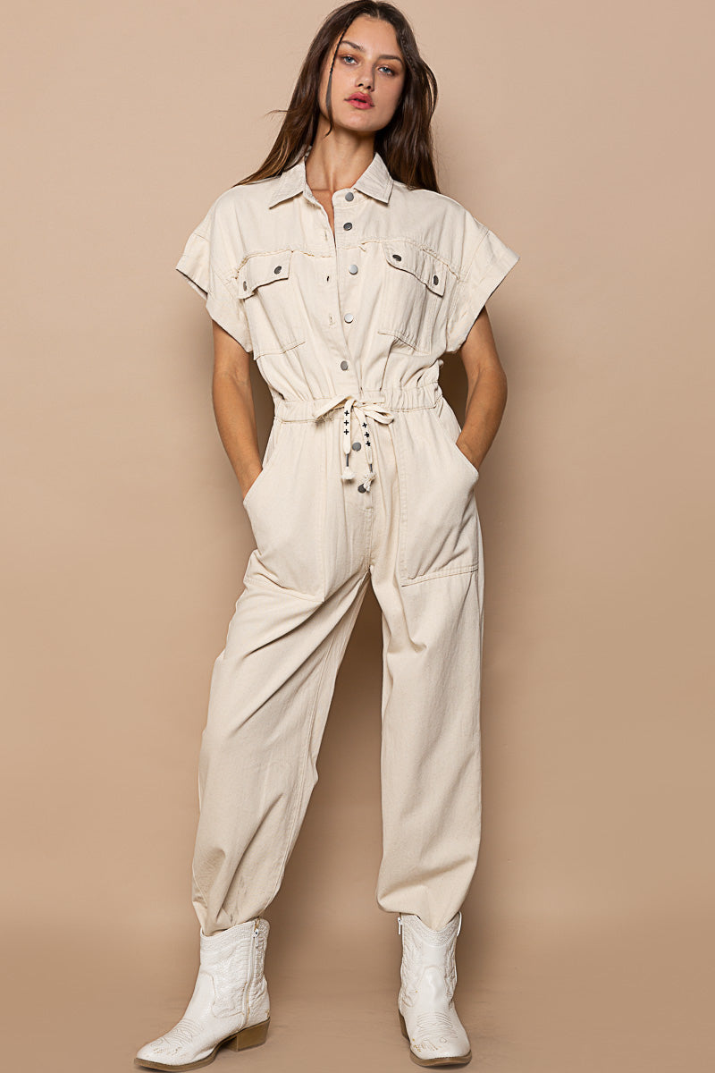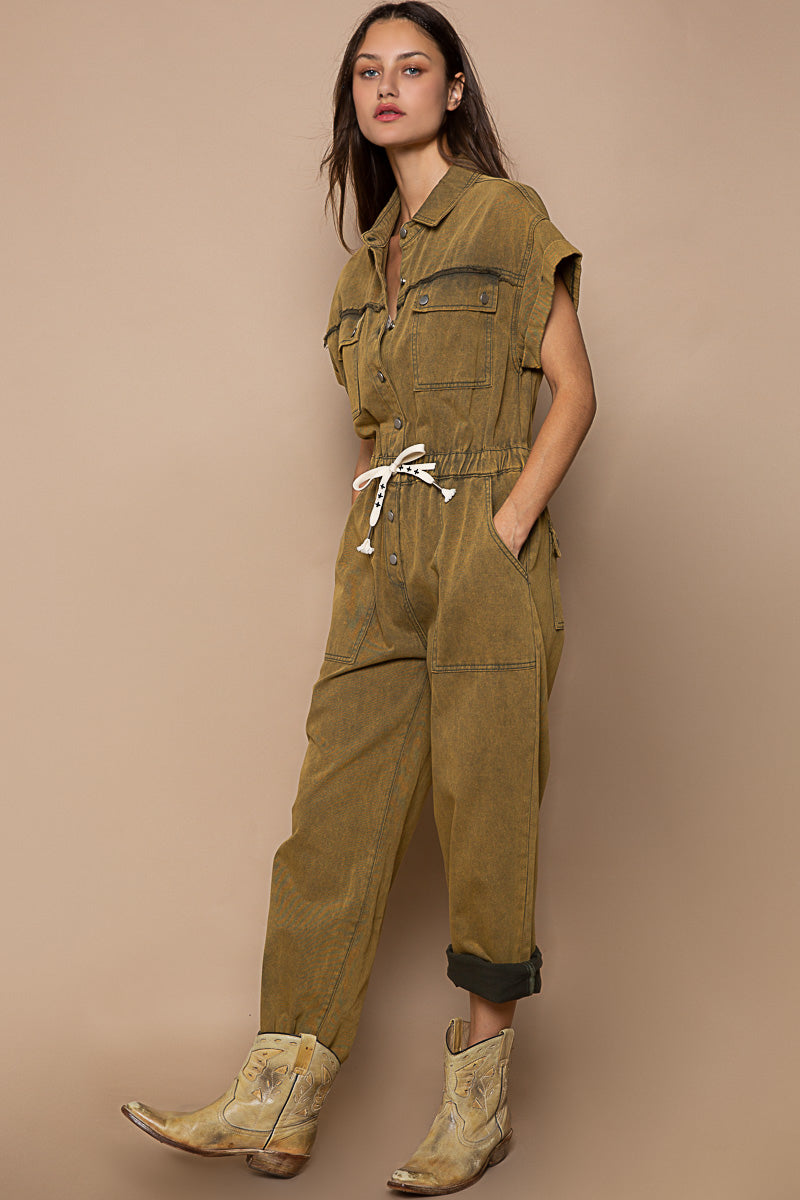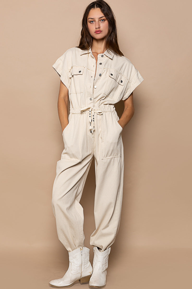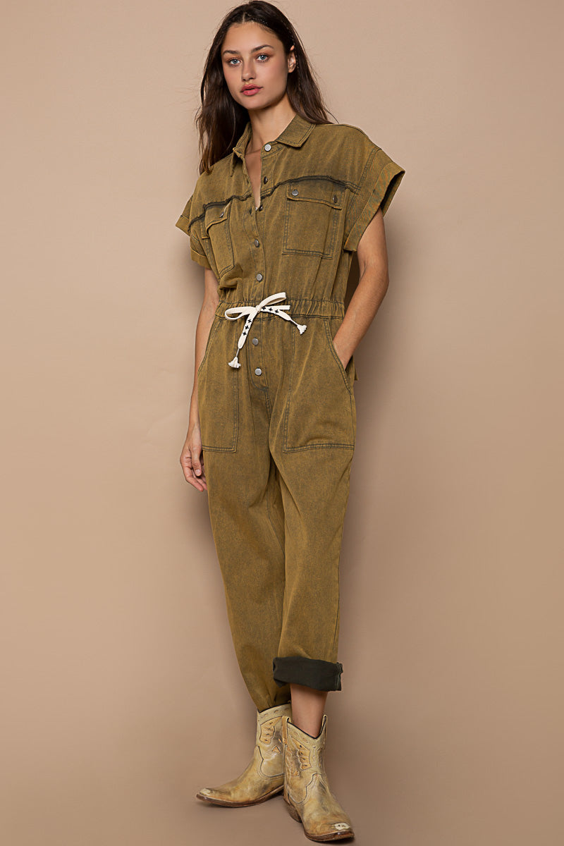 Med: Bust 42” | Waist 33” Relaxed | Rise 13” | Inseam 28-3/4” | Length 59” | Sleeve Length 3”