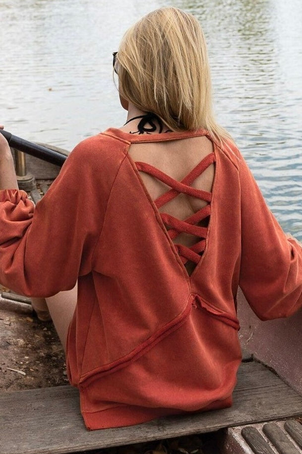 Back To Basics Criss Cross French Terry Pullover (7 Colors)
