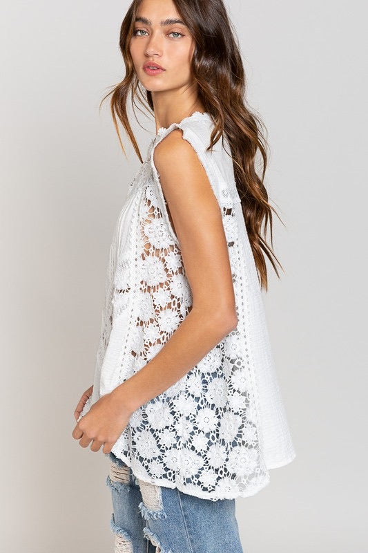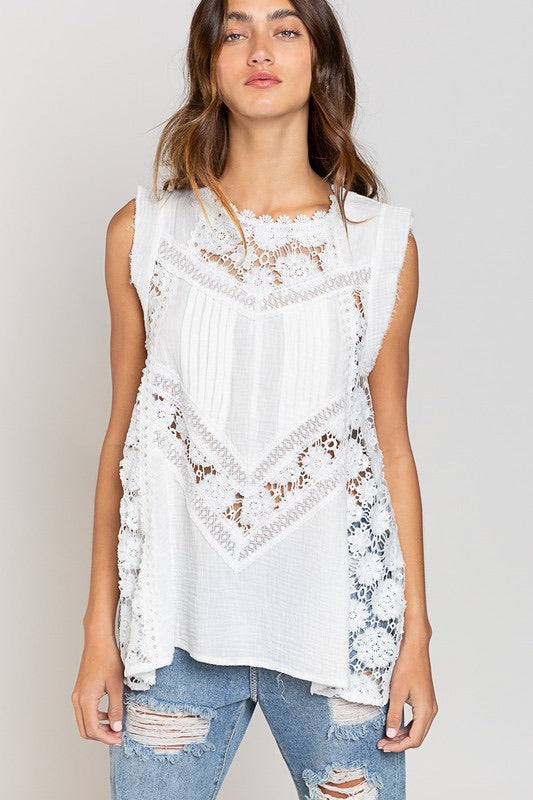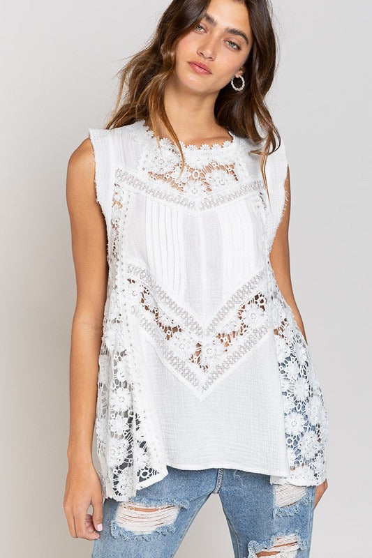Bal Harbor Floral Lace + Cotton Gauze Sleeveless Tunic Top