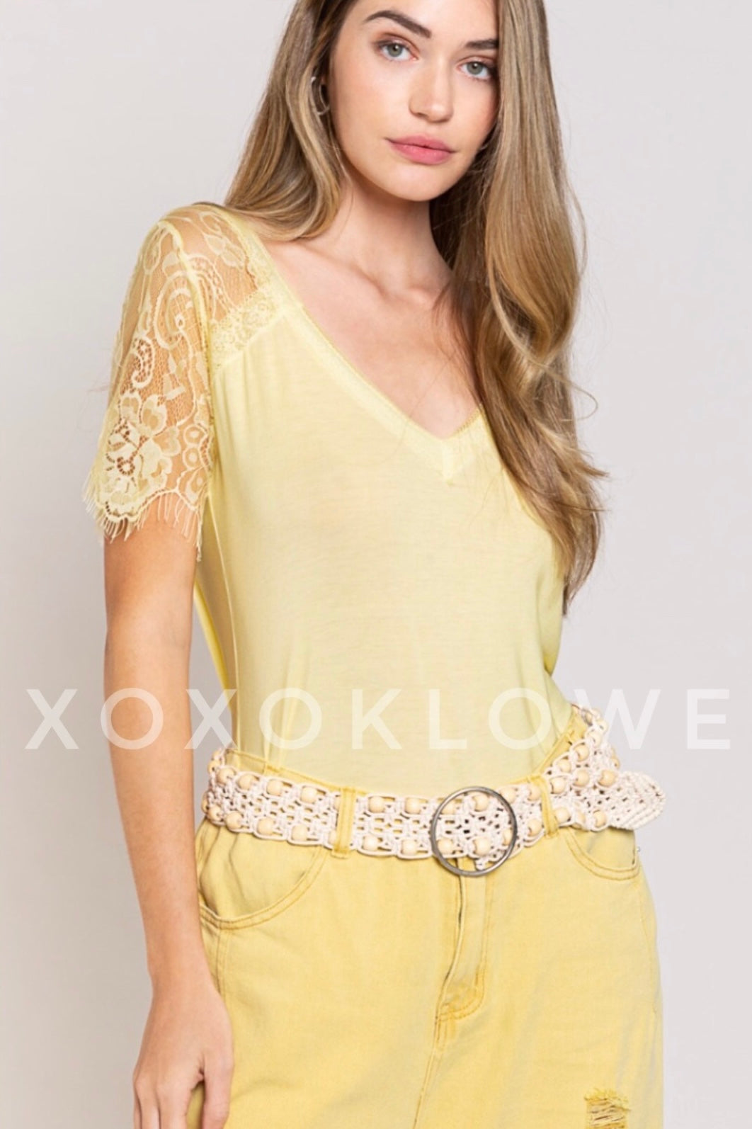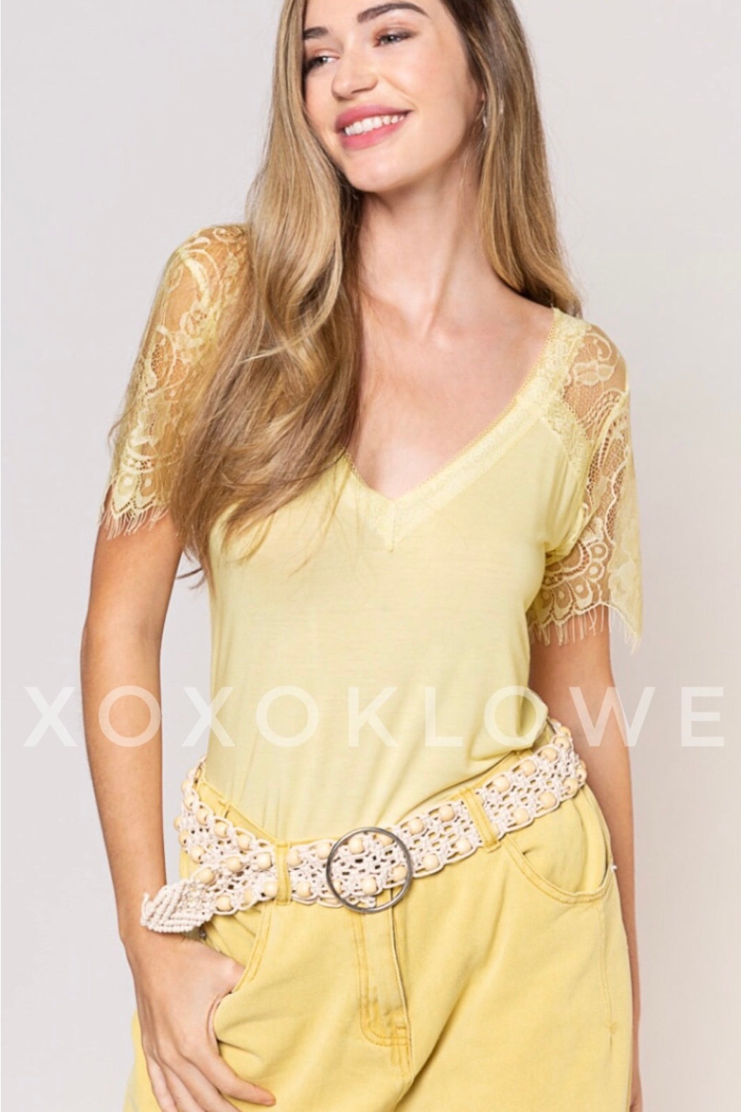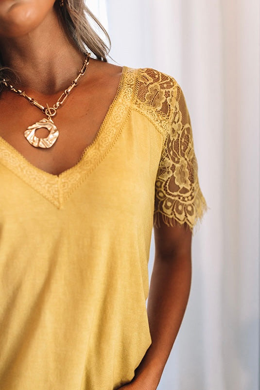 Be My Baby V Neck Lace Sleeve Rayon Jersey Tee (8 Colors)