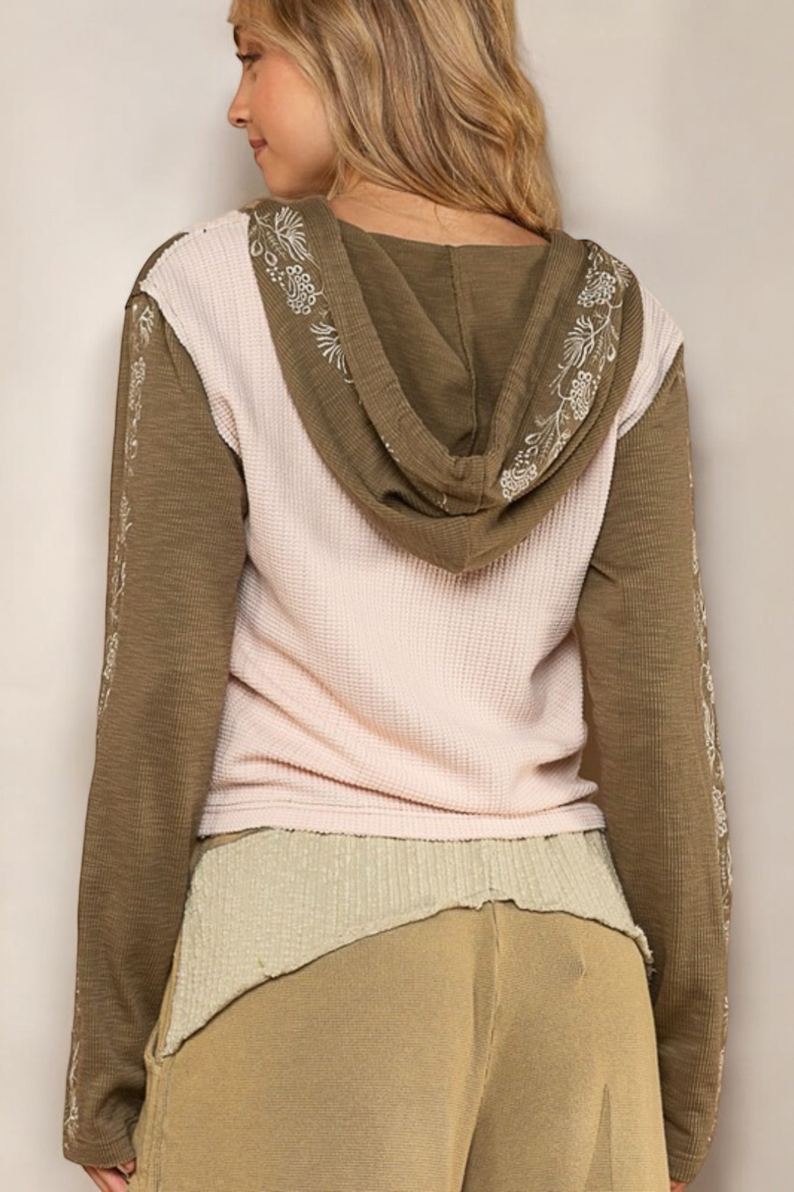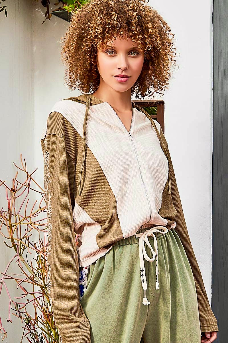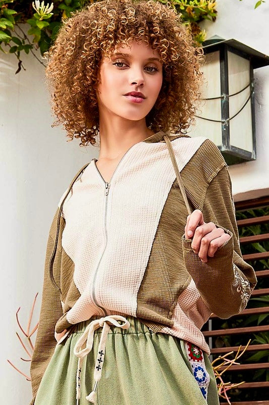 Beach Bonfire Waffle + Rib Embroidered Zip Up Hoodie