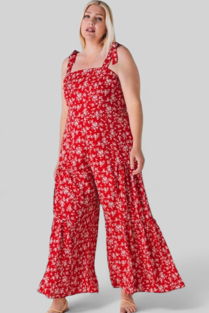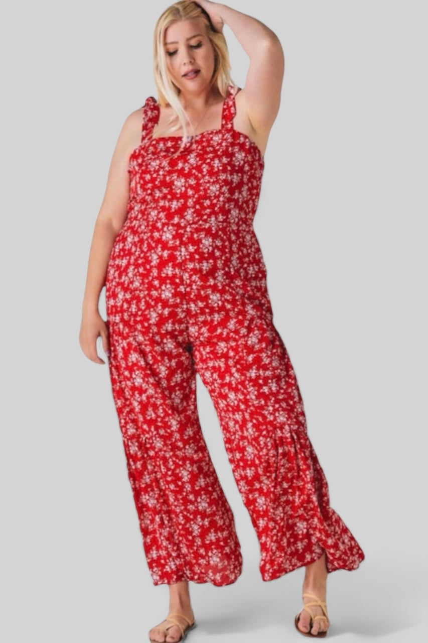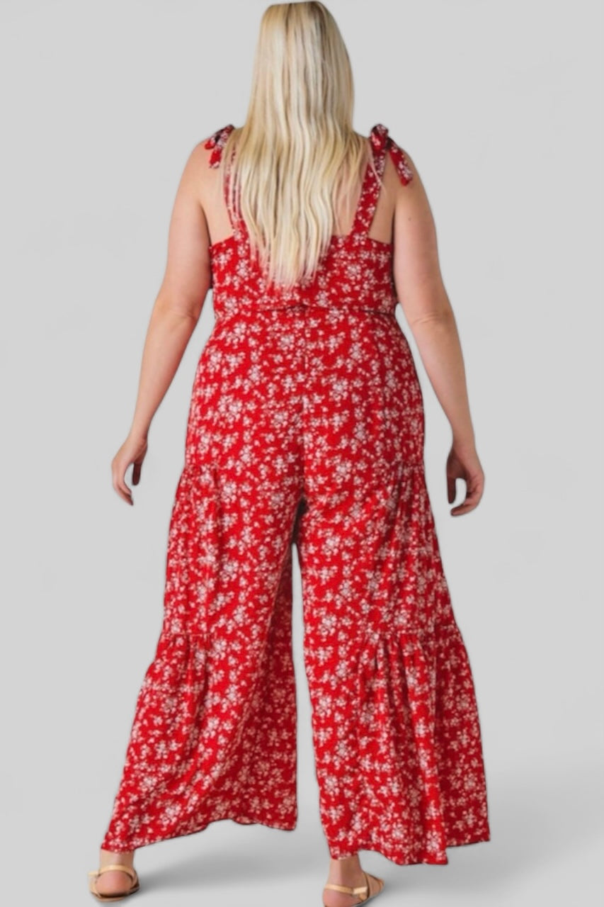 Brunch Babe Red Floral Print Sleeveless Wide Leg Jumpsuit