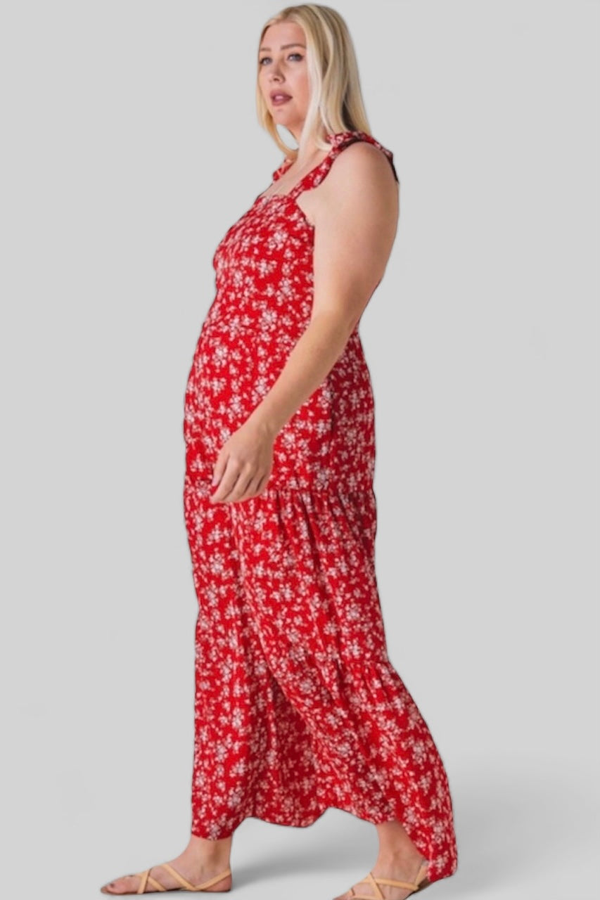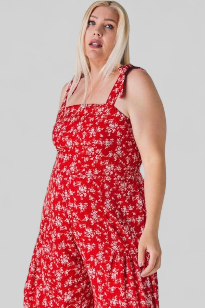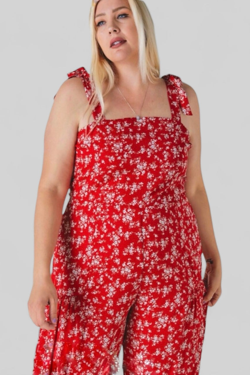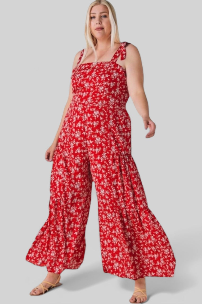 Brunch Babe Red Floral Print Sleeveless Wide Leg Jumpsuit