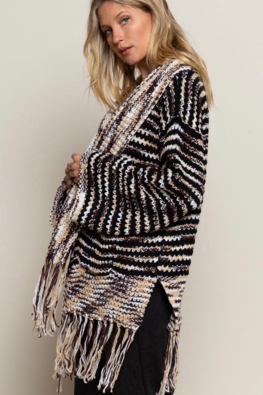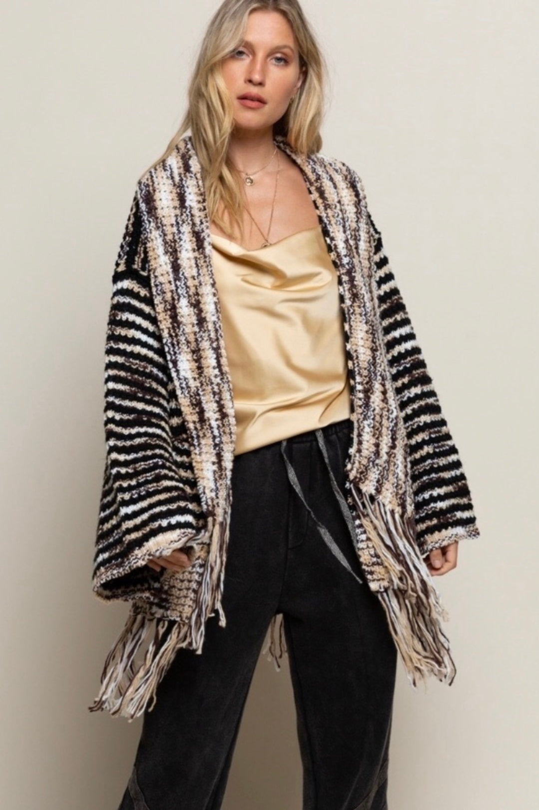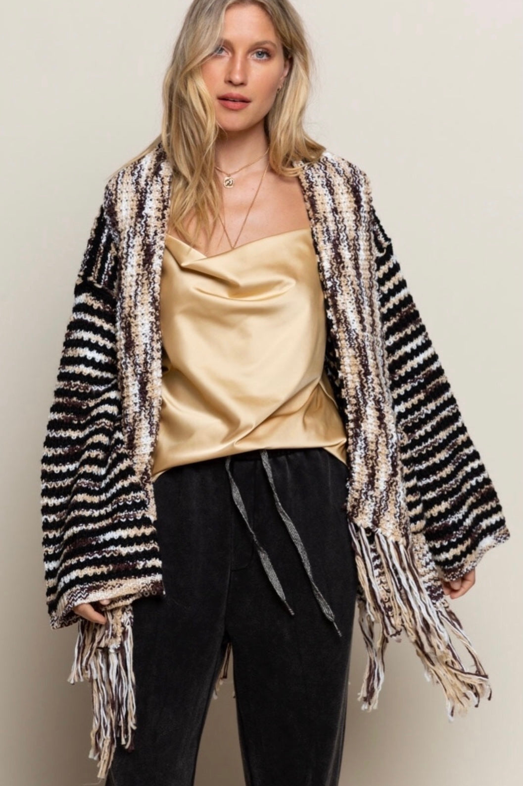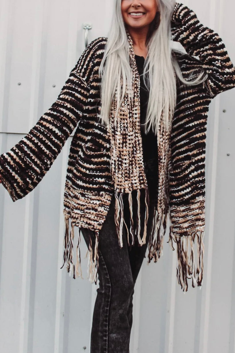 Wintered Woods Striped Cardigan with Tassel Fringe