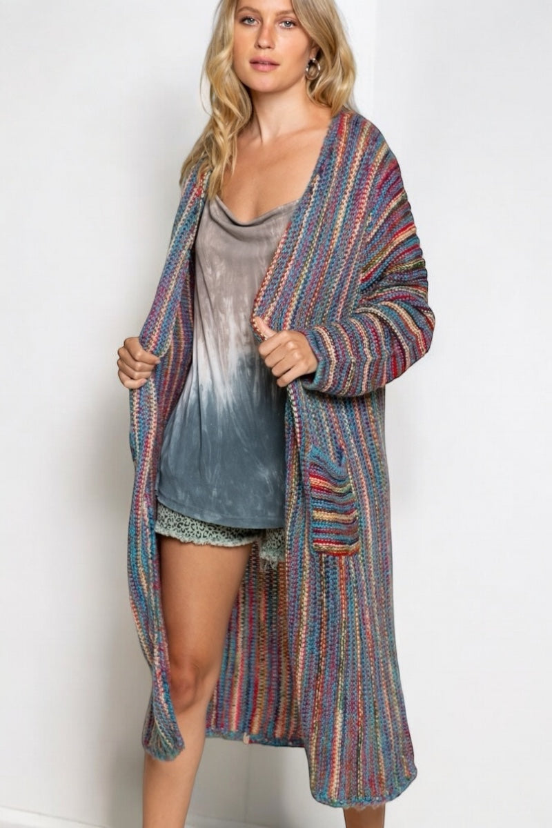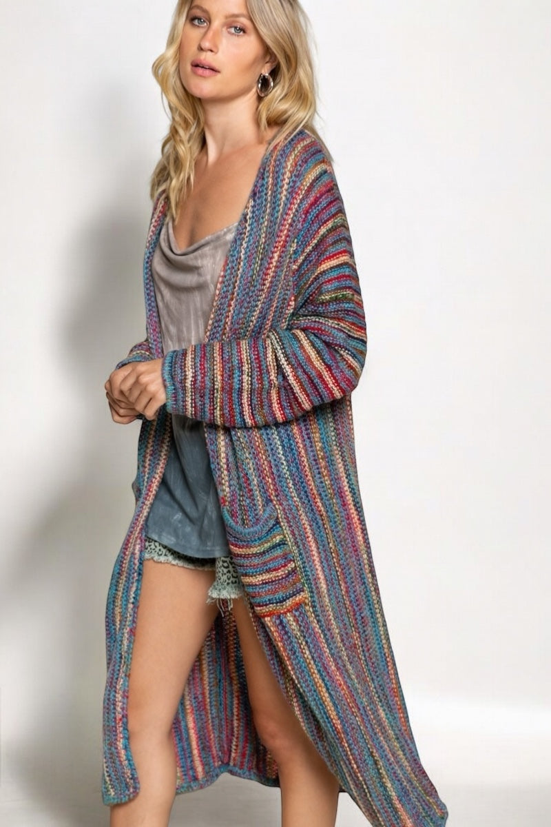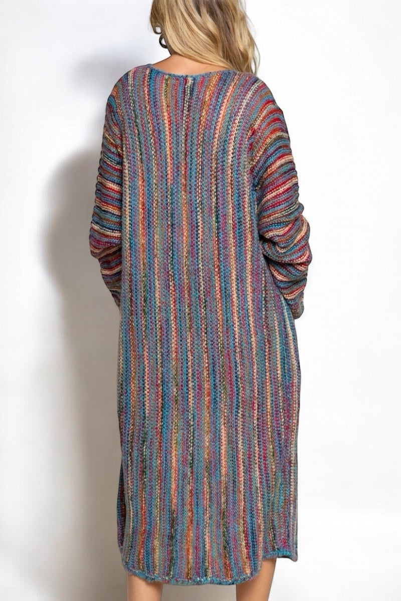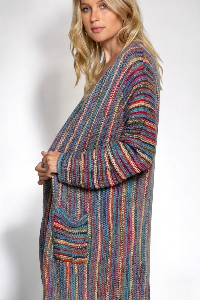 Cozy Autumn Multi Striped Long Knit Cardi (2 Colors)