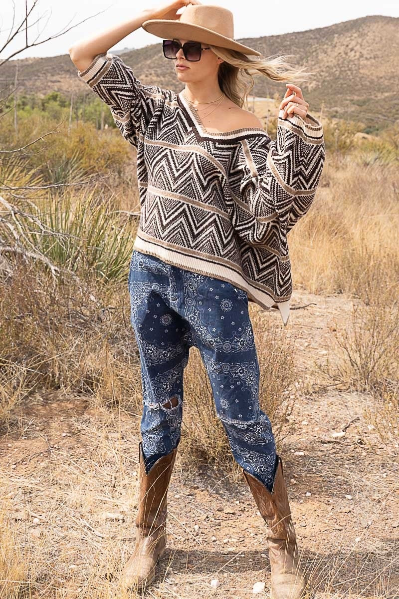 We’re loving everything about our Desert Child Aztec Sweater, from the neutral palette, the flattering drape, the billowy sleeves, to the cleavage enhancing neckline. It all magically comes together to create this boho chic, stylish, must have. This timeless classic will be in style forever - she’s a keeper!