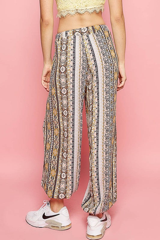 Called Out Boho Striped Patch Print Comfy Rayon Joggers