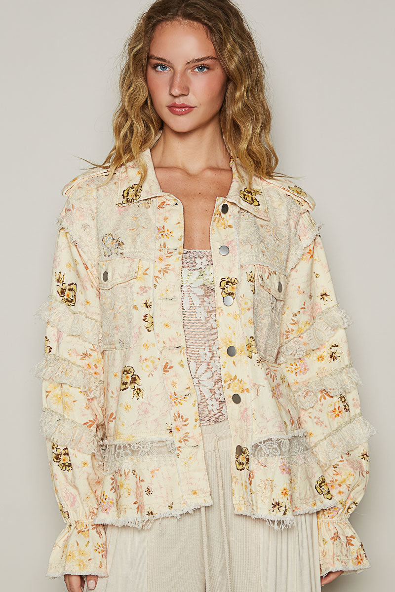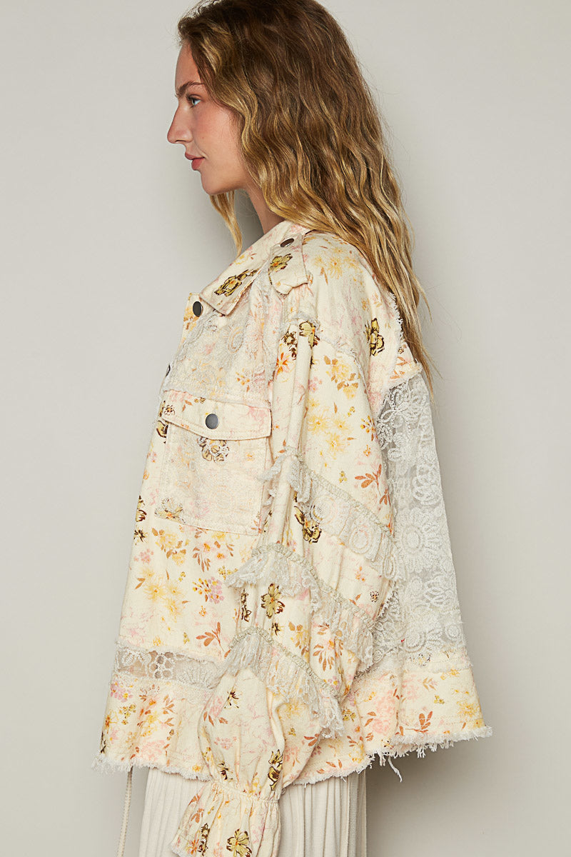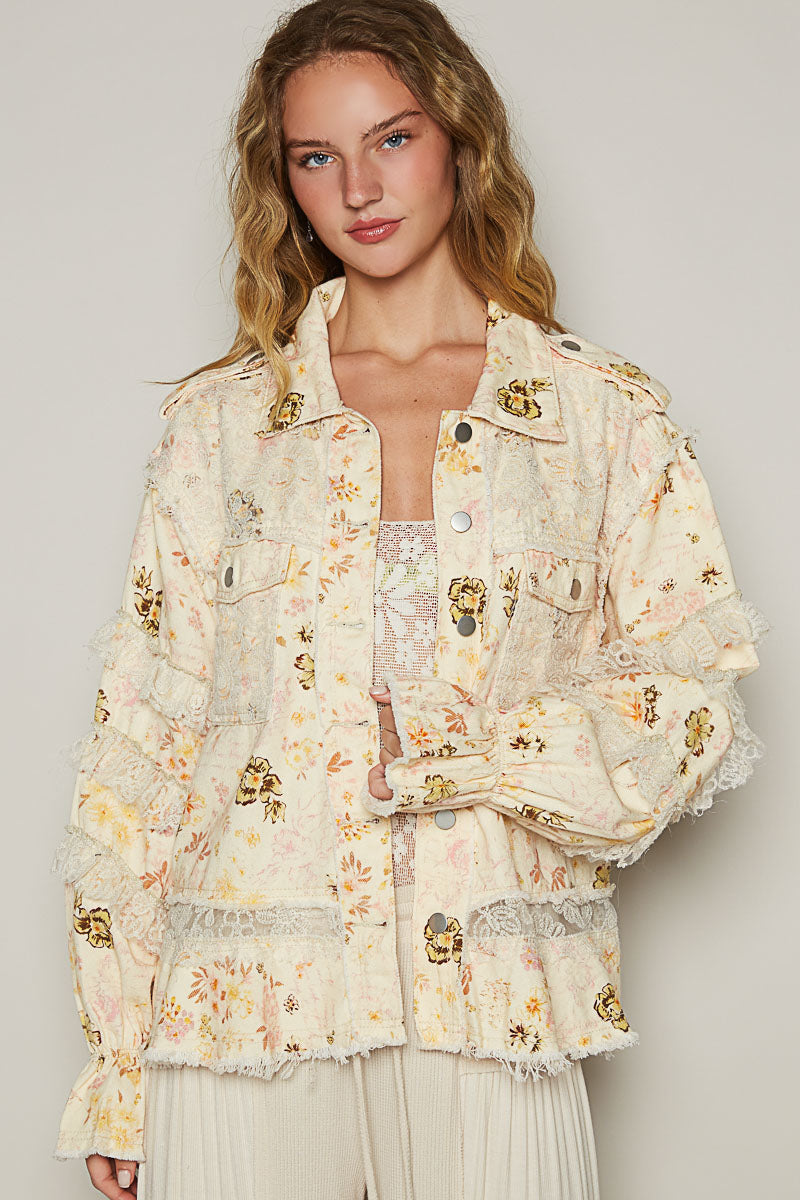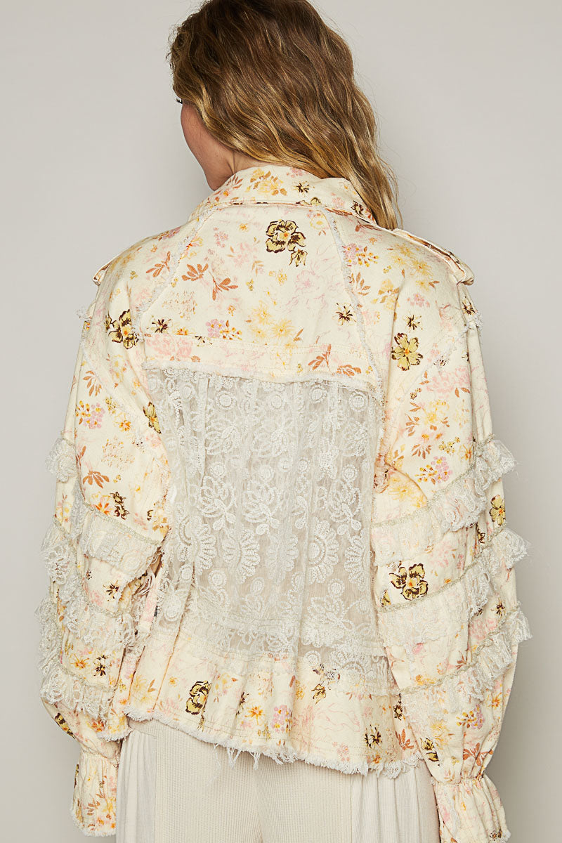 Double Take Floral Print Cotton Jacket with Lace (2 Colors)