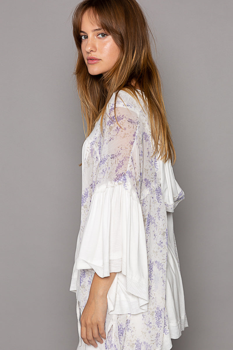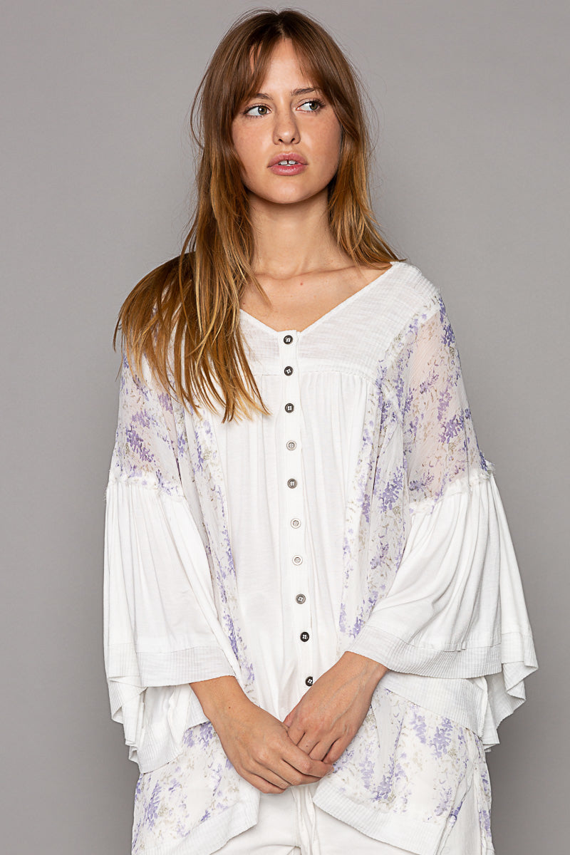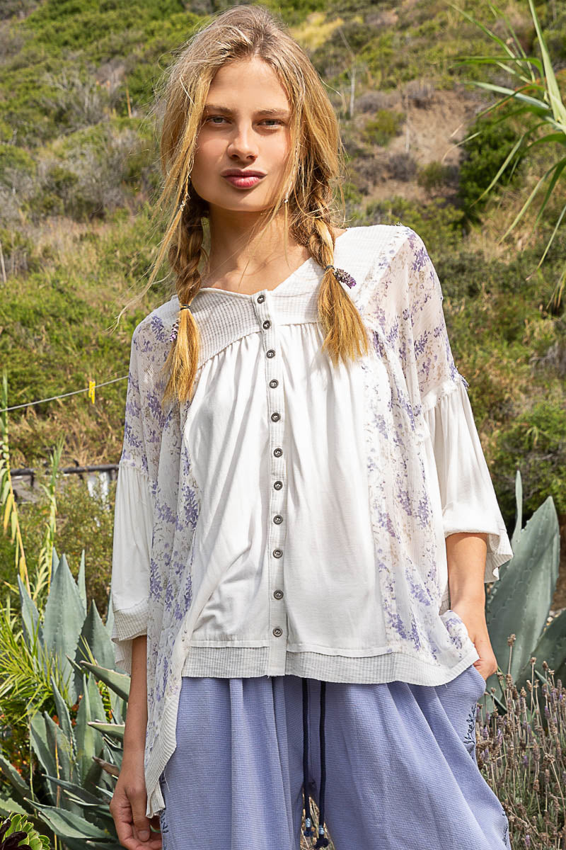 Enchanted Lilacs Button Down Jersey Knit Hoodie Top