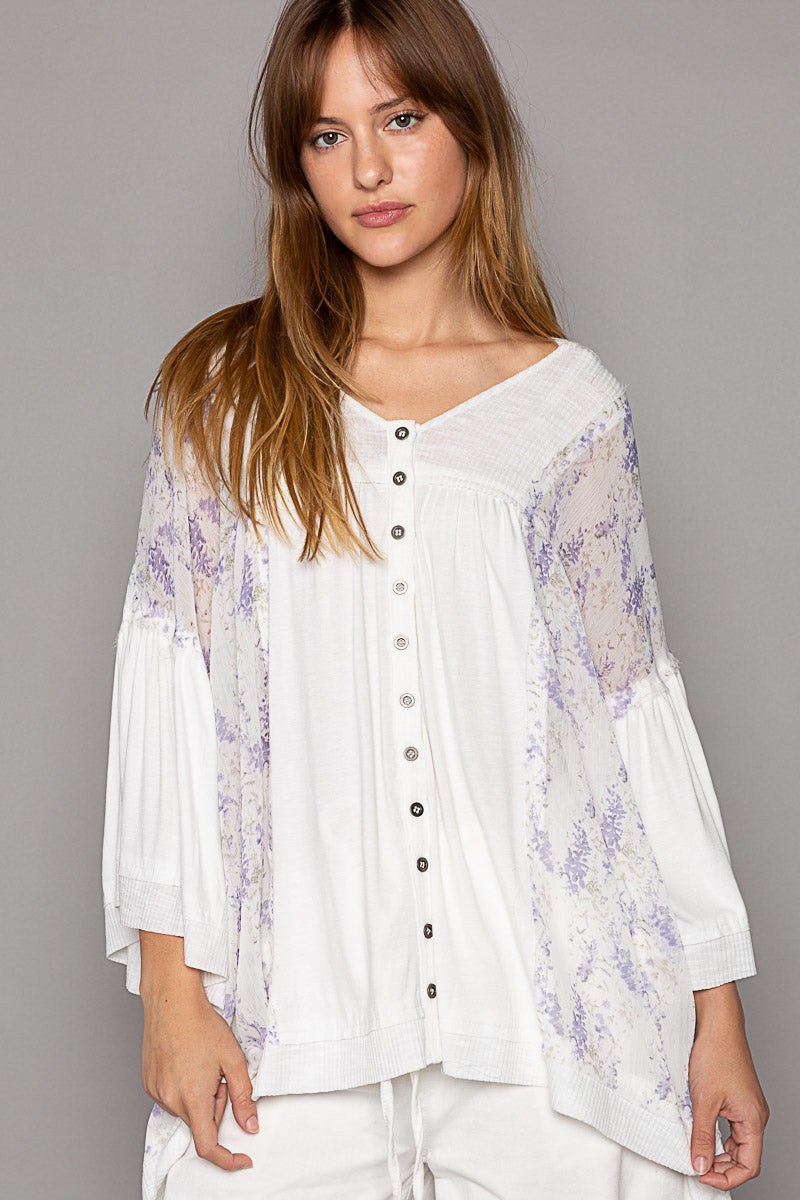 - Fabric Mix of Solid Knit + Floral Woven