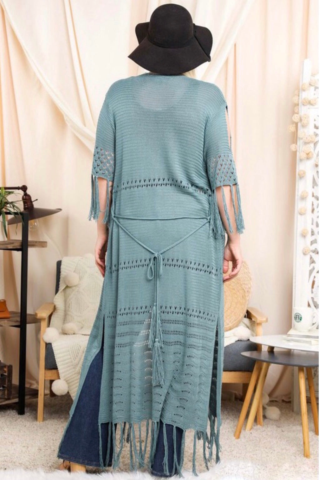 1XL: Bust 50” | Waist 50” | Length with Fringe 52.5”