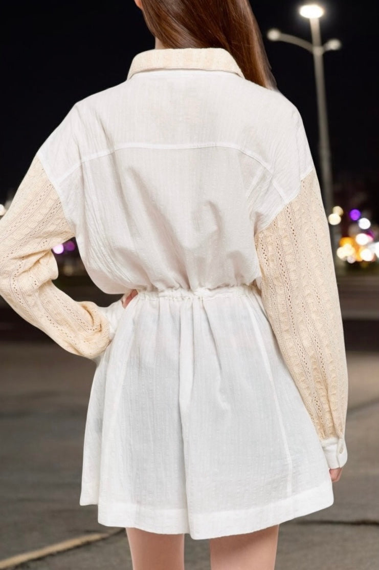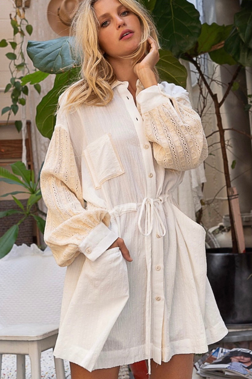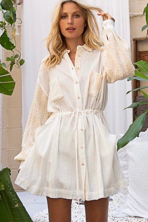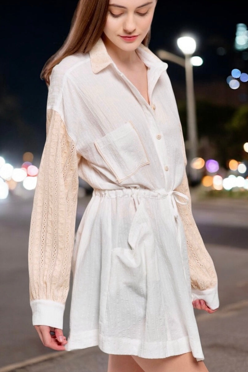 Fresh Take Lace Sleeve Tie Waist Shirt Dress