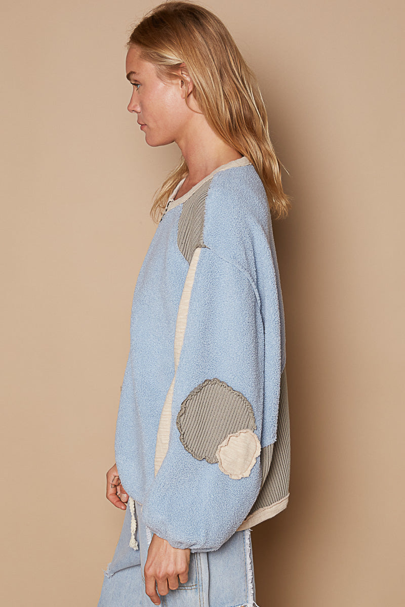 Good Karma Mixed Fabric Quarter Zip Pullover