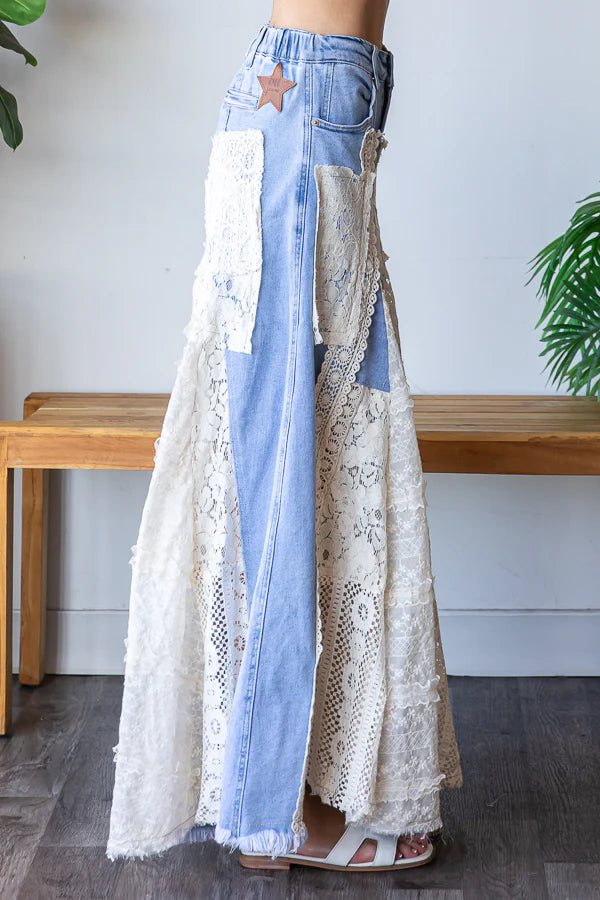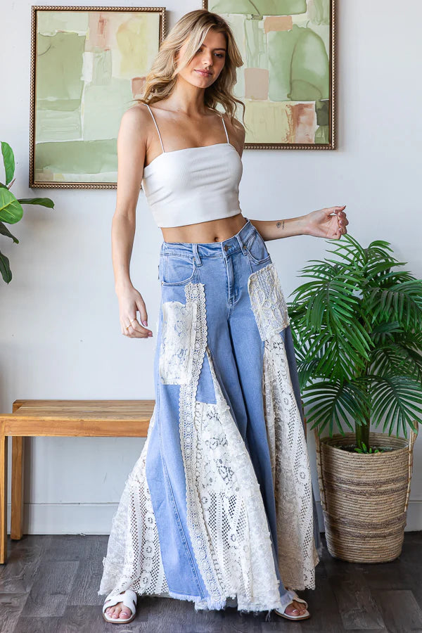 Great Escape Lace Pieced Exaggerated Wide Leg Jeans