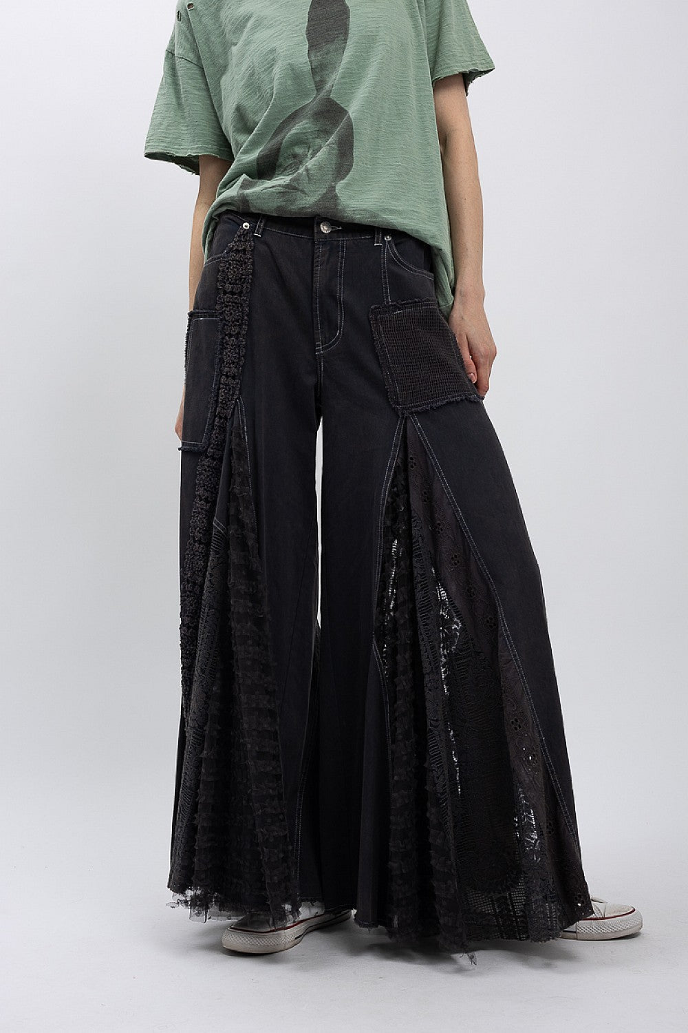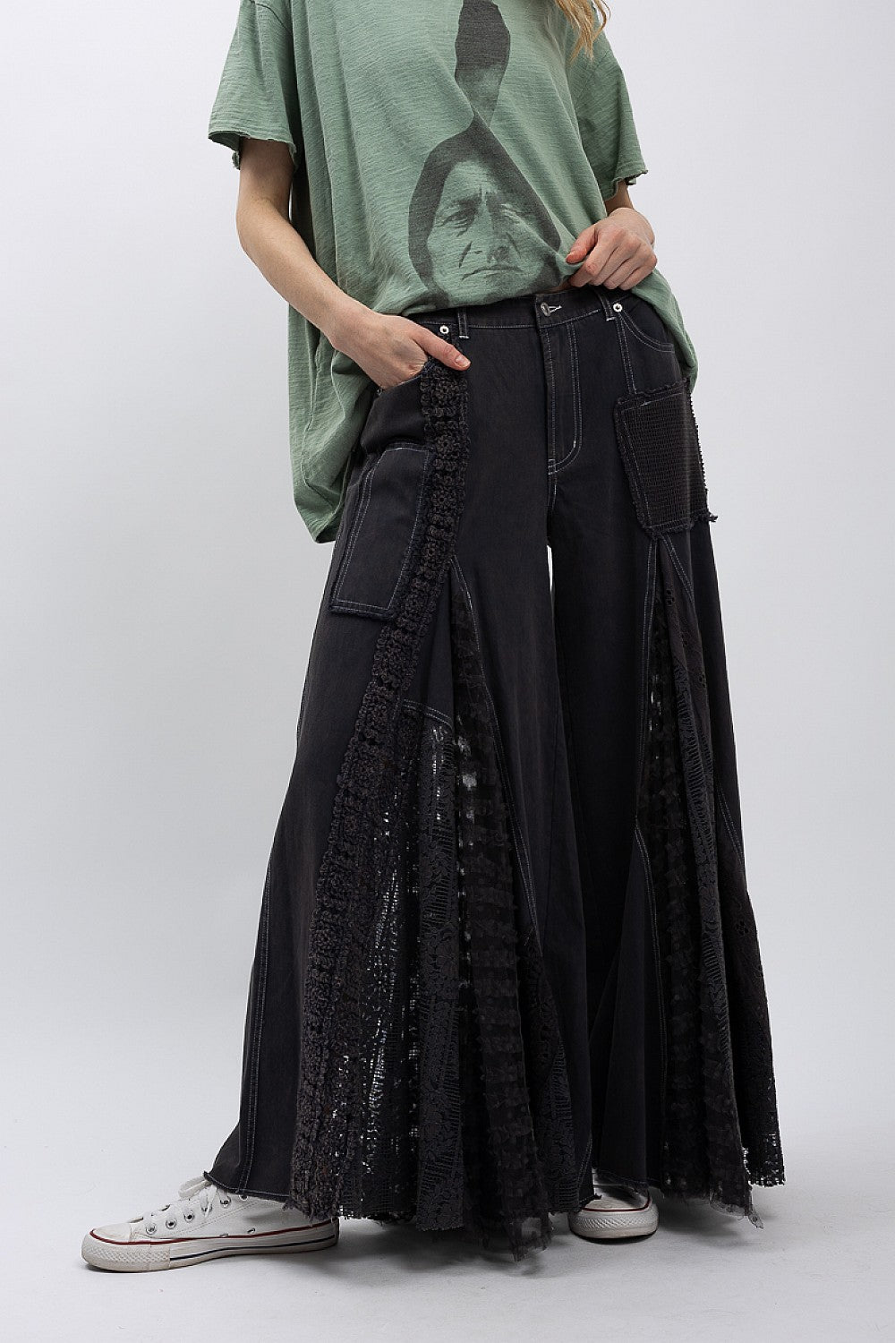 Great Escape Lace Pieced Exaggerated Wide Leg Pants