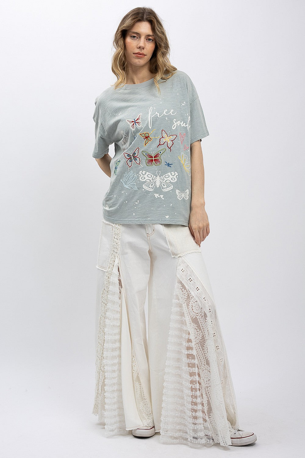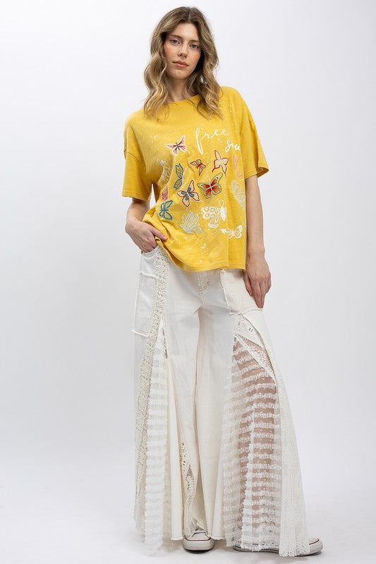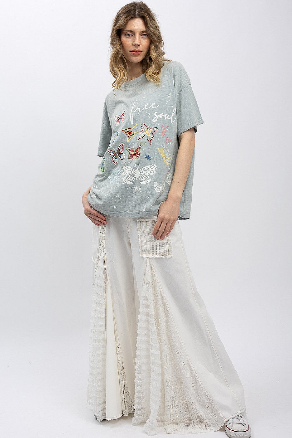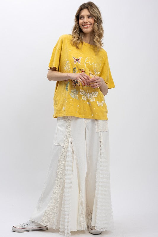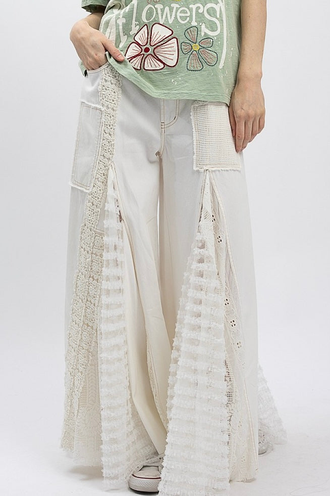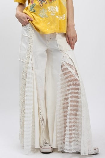 Great Escape Lace Pieced Exaggerated Wide Leg Pants
