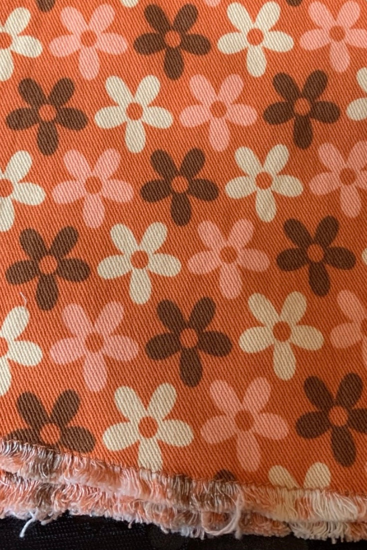 She’s got legs—and a print that won’t quit. The Groove Theory High Waist Floral Flares deliver full 70s flower power in a bold orange retro floral print that’s vintage-coded and festival-ready. Made from stretchy floral print denim that hugs every curve, these boho bell bottoms feature a high waist, zip fly with button closure, raw edge hem, and back pockets for that perfect mix of throwback and modern boho.