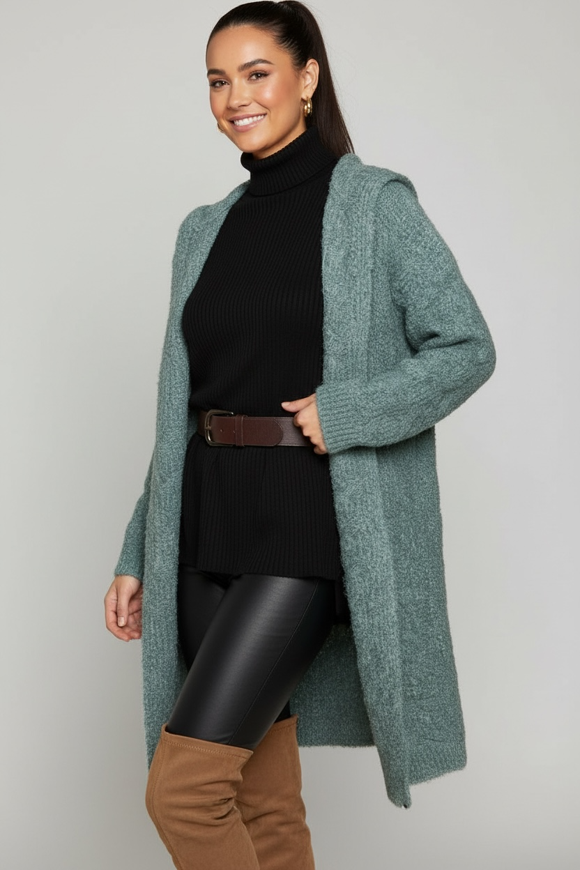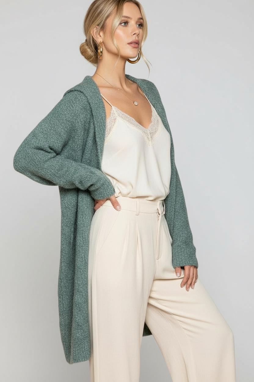 Meet the cardigan that says “I woke up cozy and cute.” This plush, fuzzy hooded sweater cardigan for women wraps you in an oversized hug, finished in a rich jade that steals the spotlight without trying. The open-front design keeps it effortless, the hood adds attitude, and the medium-weight soft furry knit gives you that just-right warmth for coffee runs, comfy couch days, and everything in between. Throw it on, feel instantly elevated, and let everyone be just a little bit jealous with envy.