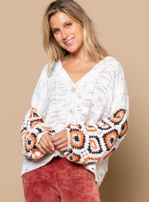 Meet Me at Grams Crochet Sleeve Cardigan Sweater