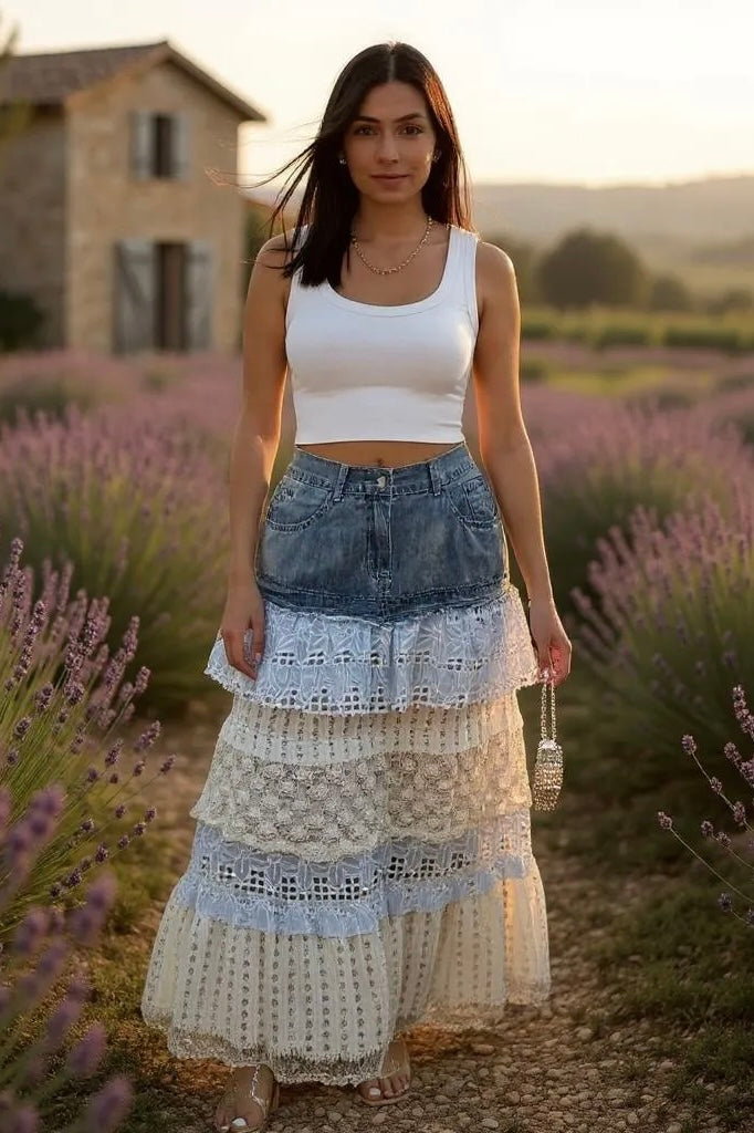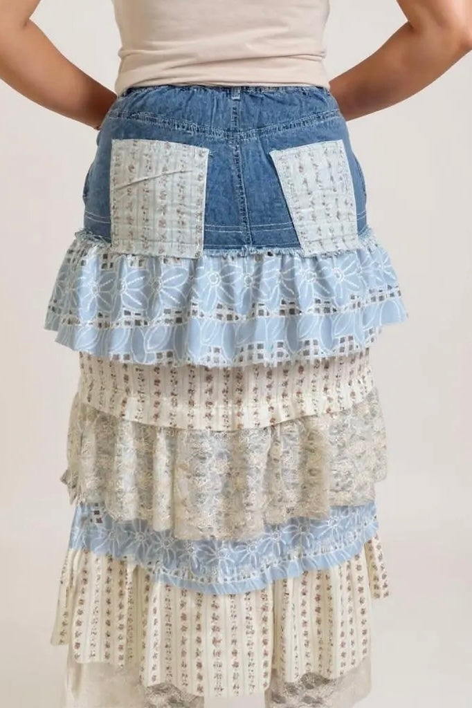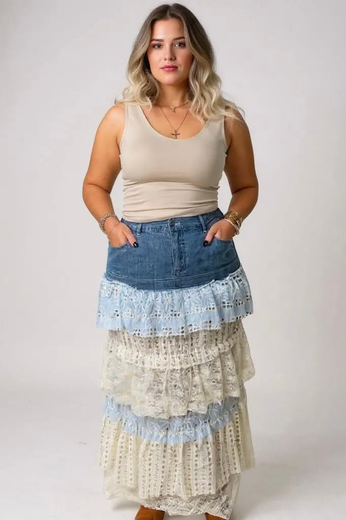 Midsummer Magic Tiered Ruffle Denim Maxi