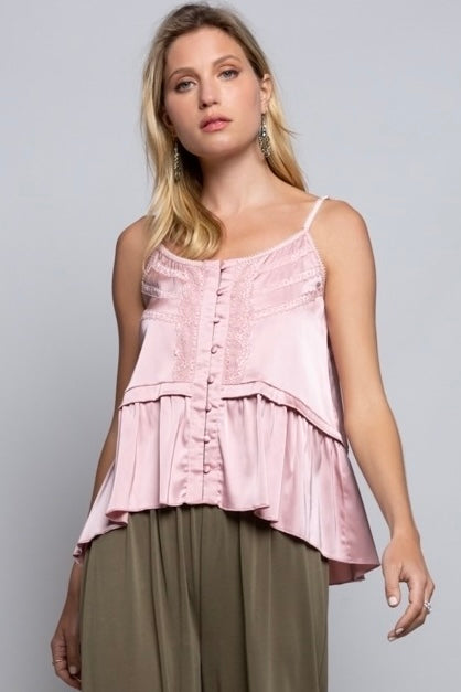 Paloma Lace Detail Button Front Satin Cami Top
