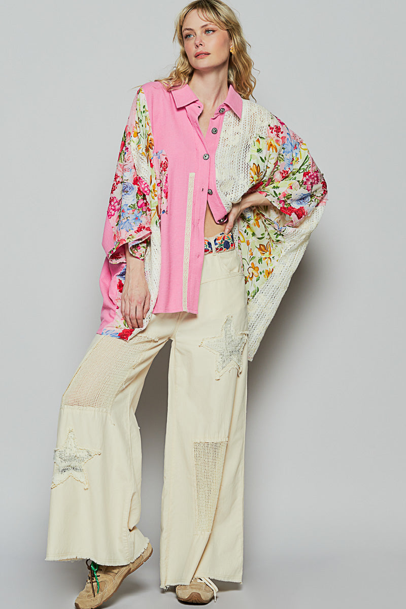 Something Bold Floral Thermal Crochet Lace Mix Button Down