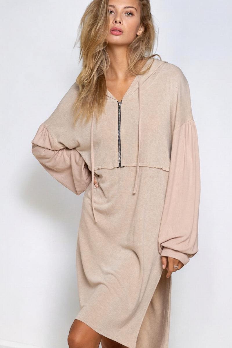Relax + Chill Half Zip Long Sleeve Hooded Midi Tunic Dress