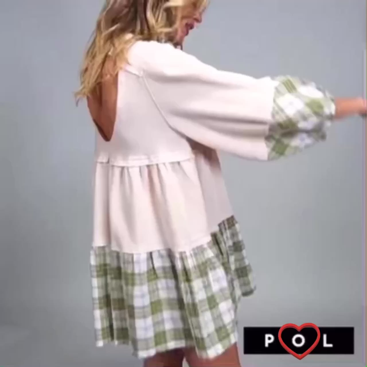 Shades Of Fall 3/4 Sleeve Plaid + Rib Knit Tiered Tunic (2 Colors)