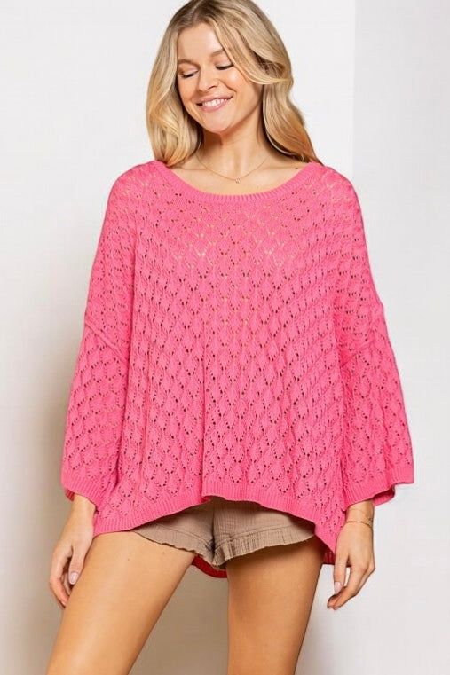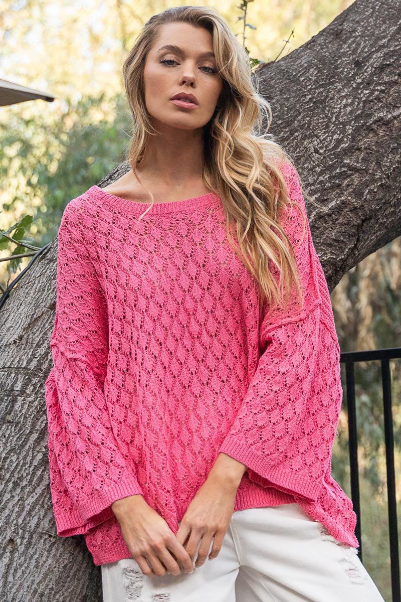 Show Me Crochet + Rib Knit Wide Neck Transitional Pullover