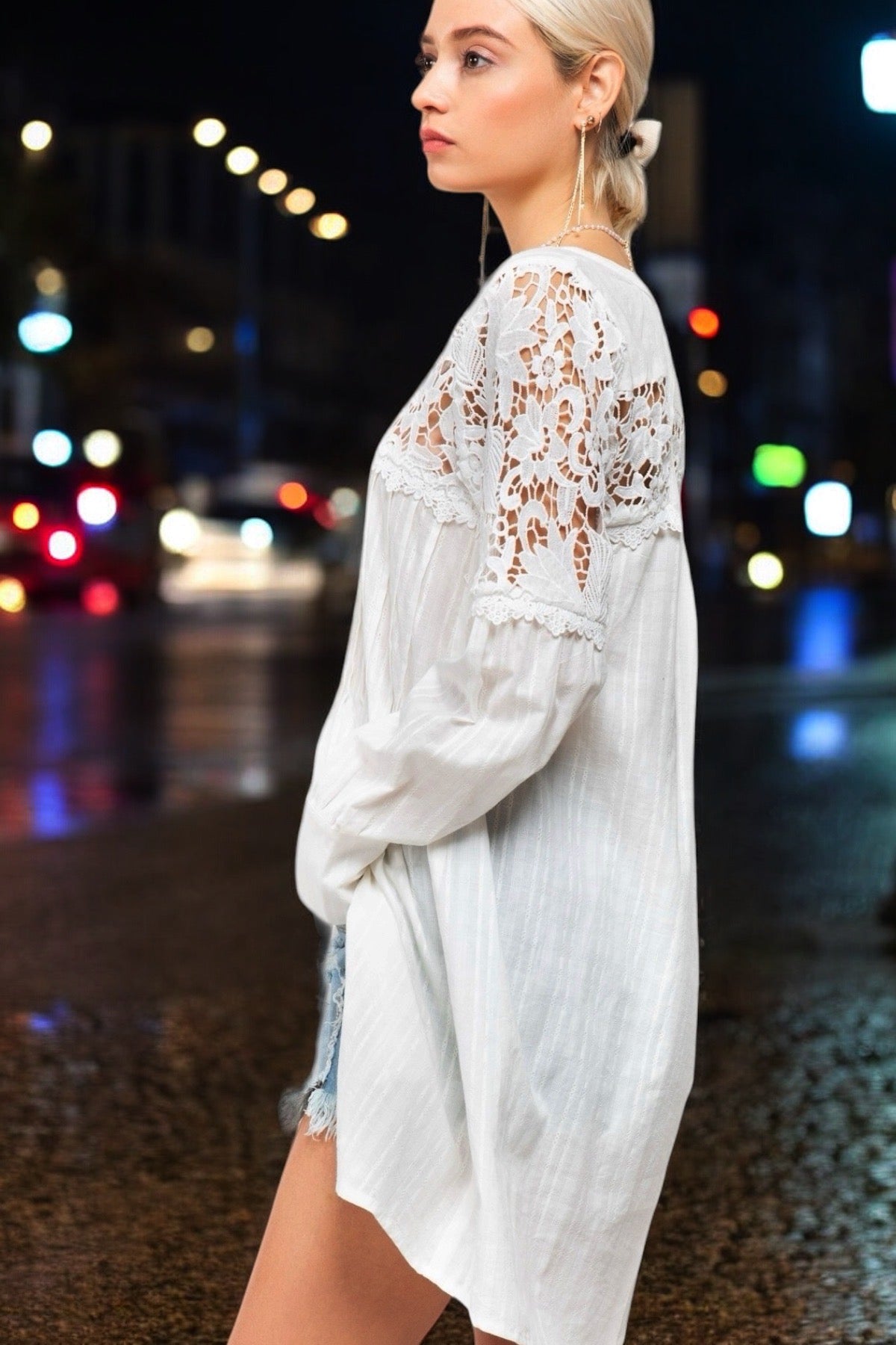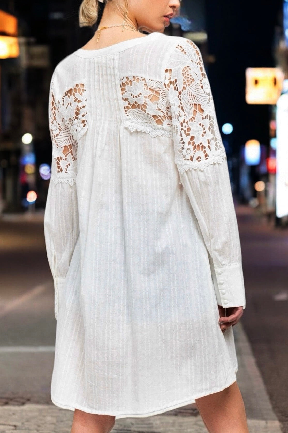 - Lace Insets on Yoke + Sleeves
