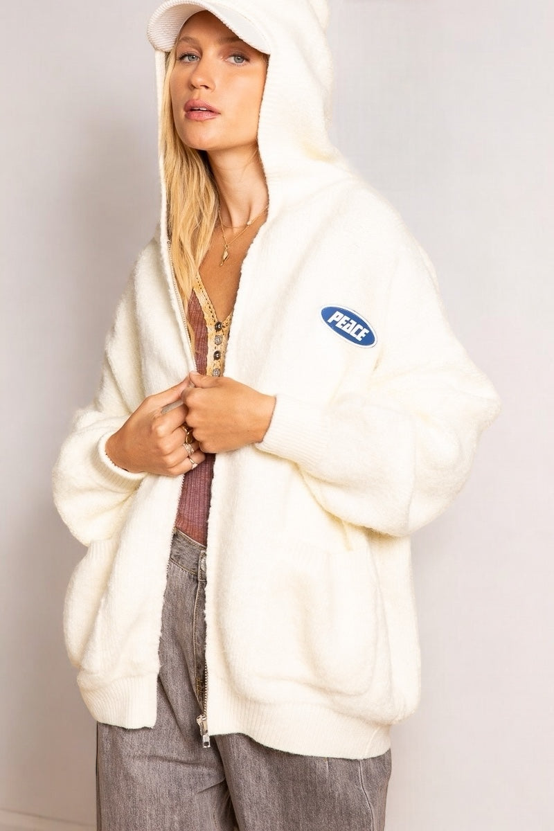 Spreading Peace Retro Zip Up Cozy Sweater Hoodie