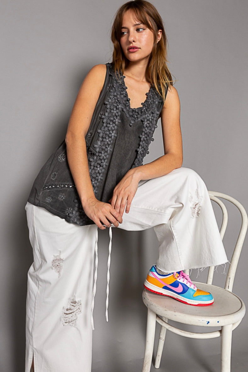 Summer Blooms 3D Flower V Neck Sleeveless Top (3 Colors)