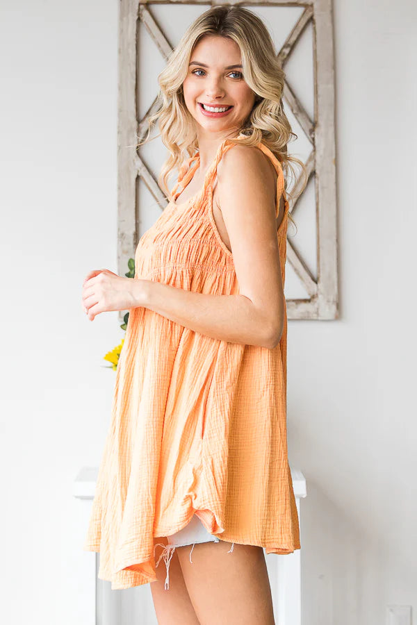 Sunsational Washed Cotton Tress | Smocked Mini Dress Top | 2 Colors