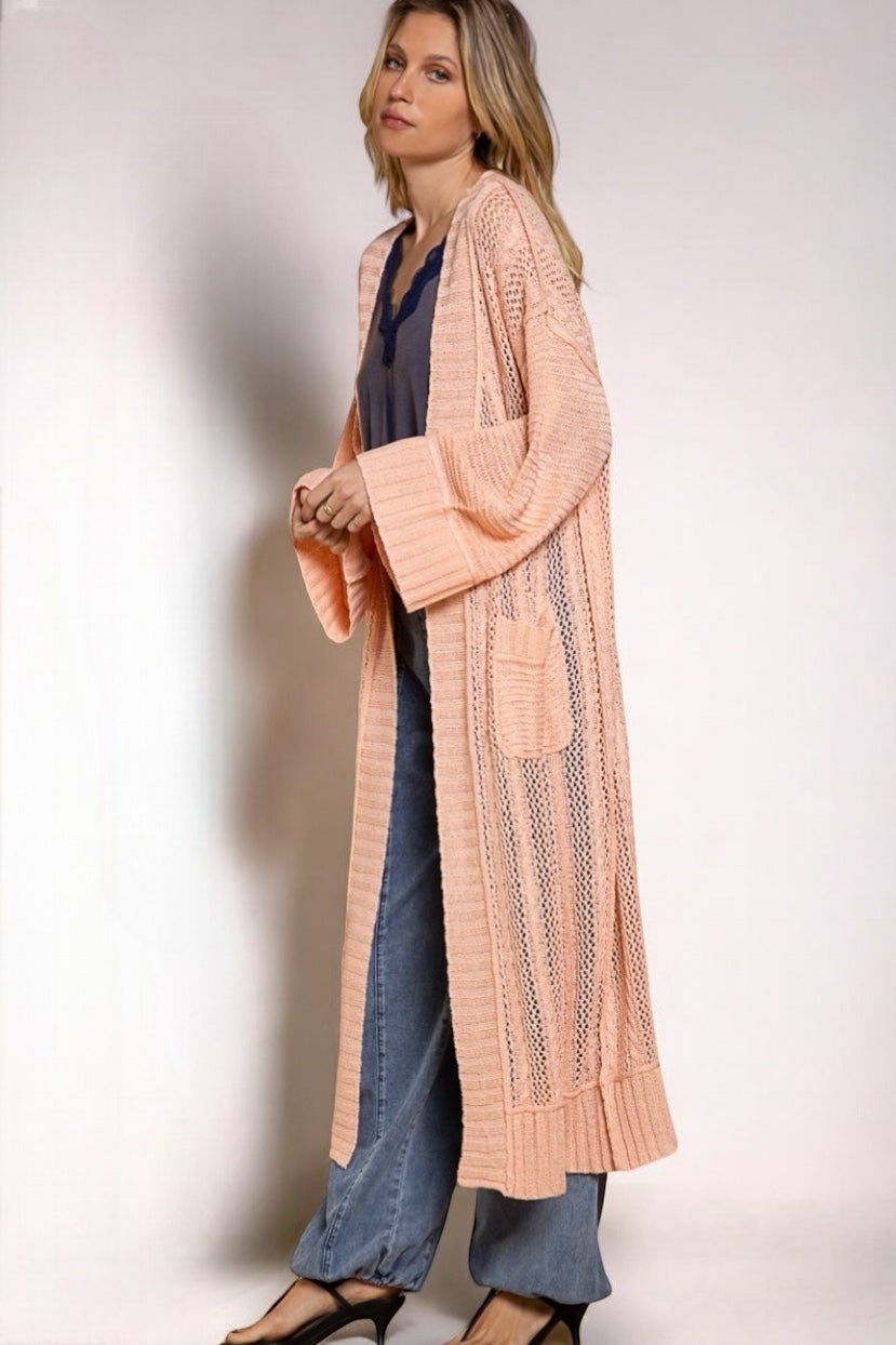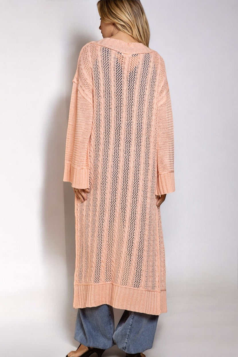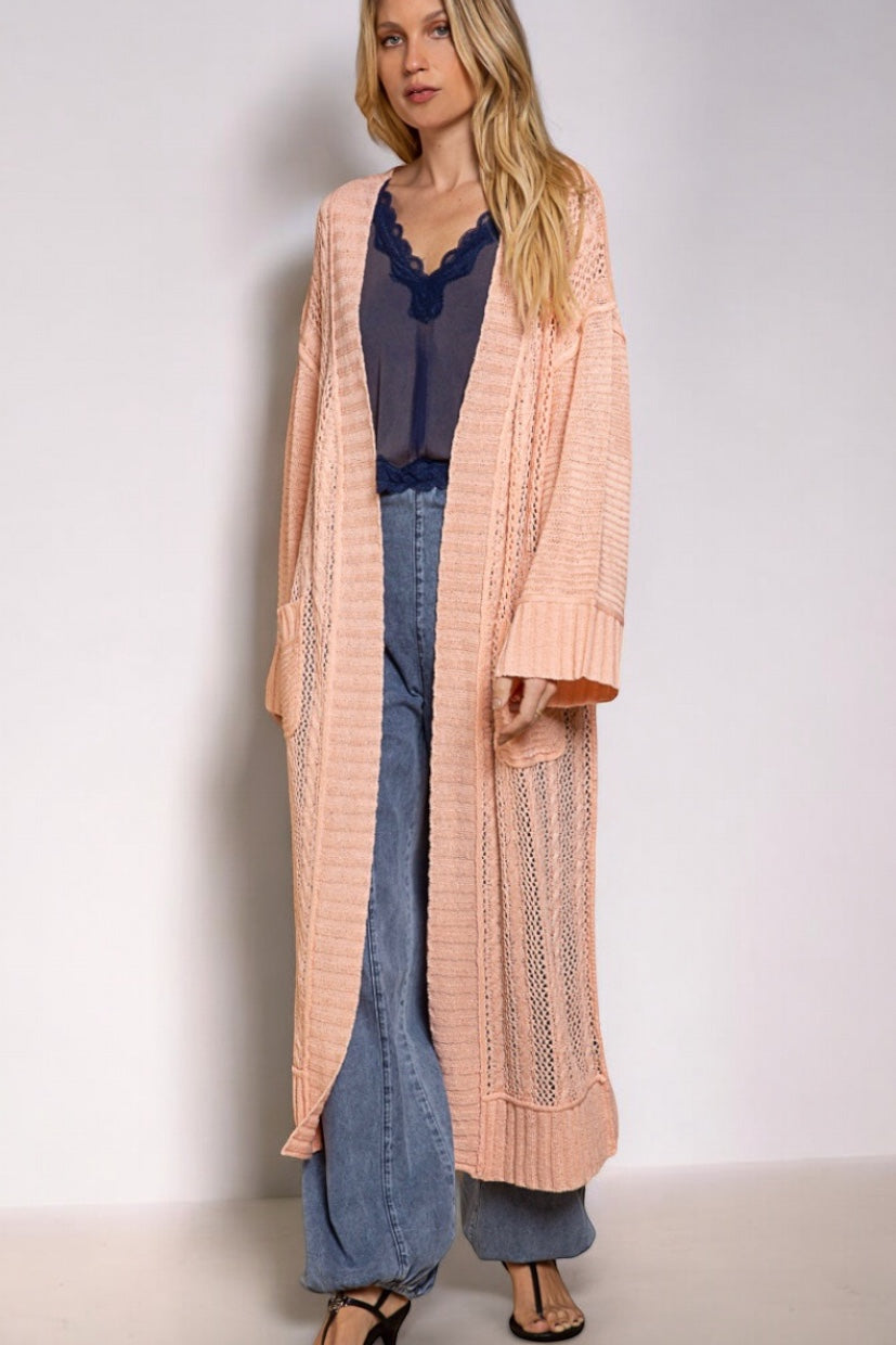 Take Me With You Mixed Pattern Weave Maxi Cardigan